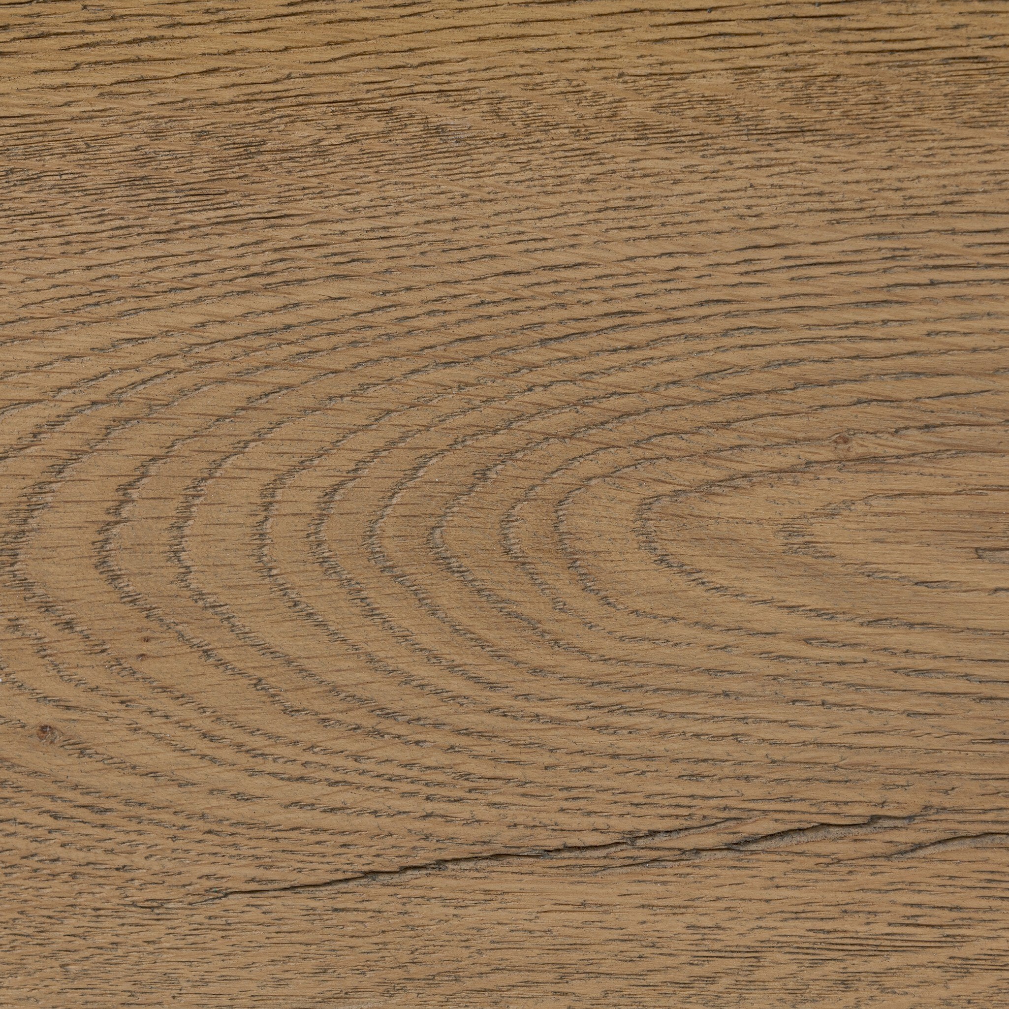 Crafted with care, the Dina Bed combines contemporary elegance with timeless comfort. Its three-panel headboard and footboard feature rich chestnut top-grain leather framed by aged smoked oak, while subtle top-grain leather tufting accented with brushed brass bars adds sophisticated modern flair. Soft, rounded legs complete the refined silhouette, making this bed a welcoming centerpiece for any bedroom sanctuary.