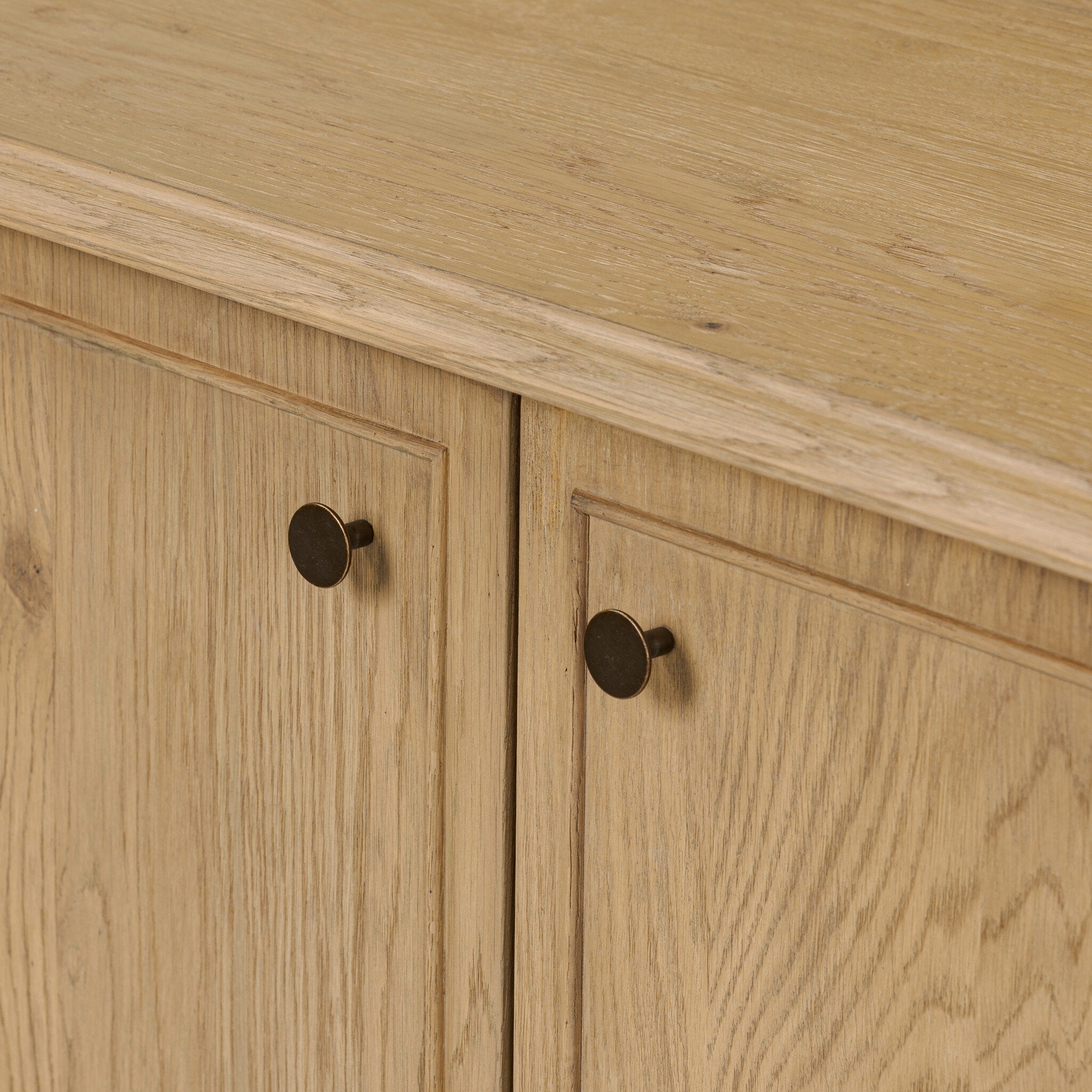 Discover timeless storage with the Maggie Sideboard, a beautifully proportioned piece in aged smoked oak that celebrates natural wood grain. Spacious cabinets provide generous room for linens, dishware, or décor, while slender tapered legs elevate the design with an airy, sophisticated presence. Finished with delicate bronze knobs for an understated touch of elegance. Perfect for dining rooms, living spaces, or entryways seeking both function and refined style.