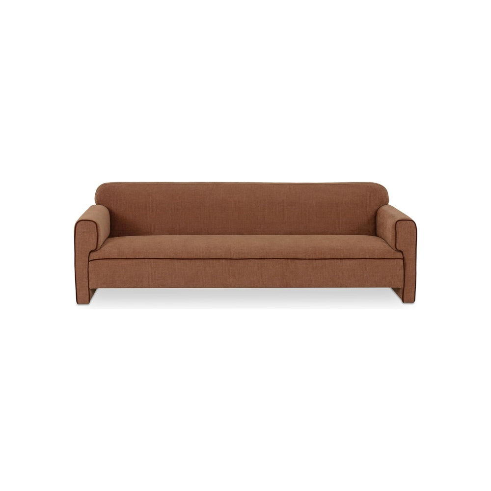 - Curved Contours: Its squared side profile juxtaposes with inward-rolled arms and a gently curved back for an inviting silhouette.