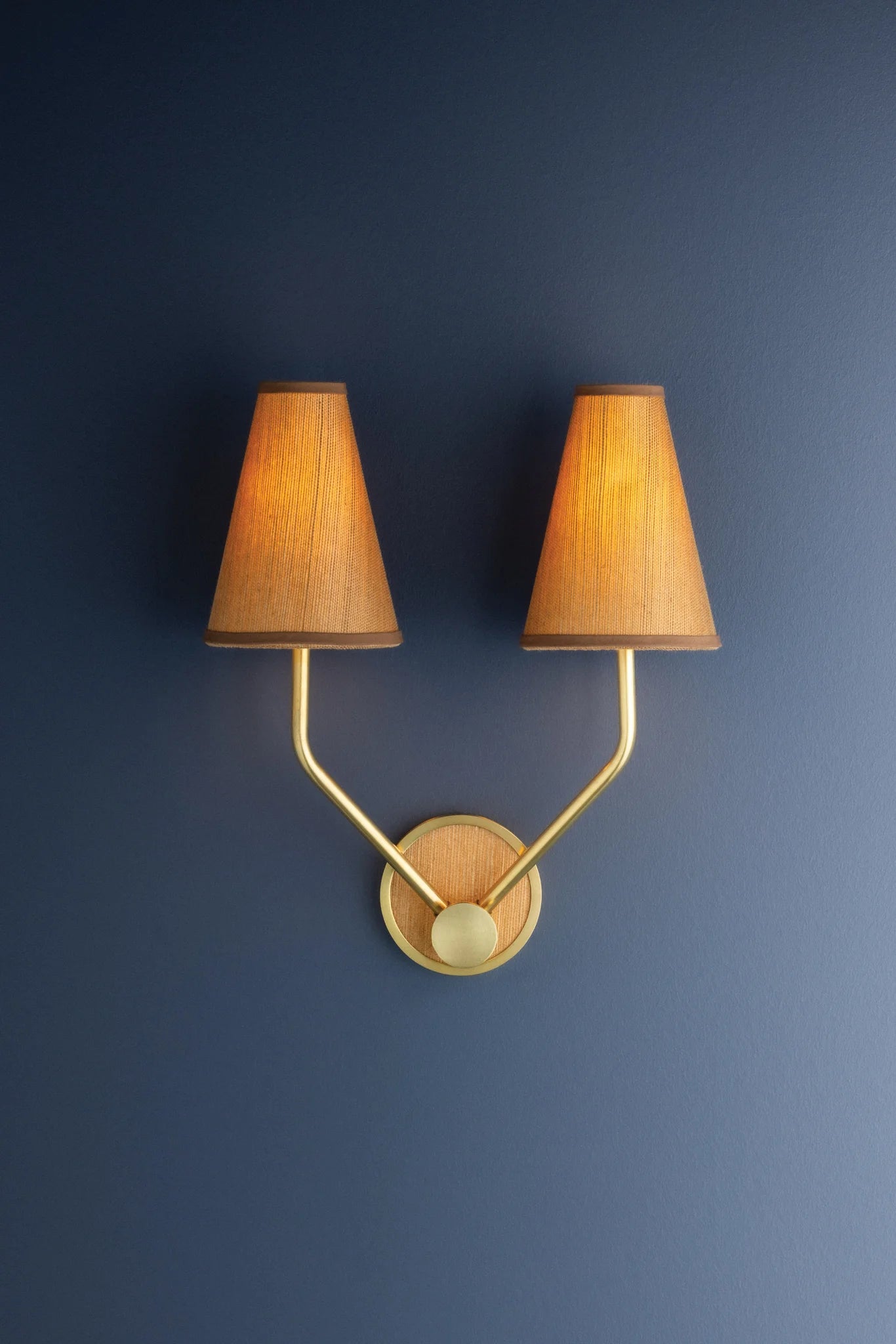Drawing inspiration from Victorian design traditions, the Buskirk wall sconce merges timeless elegance with artisanal craftsmanship. Featuring handwoven grasscloth shades and a textured backplate, this fixture celebrates natural materials with understated sophistication. Warm brown linen edging provides gentle visual interest, while Aged Brass accents add a refined finishing touch. Buskirk works beautifully in intimate spaces that deserve a touch of character, and due to the natural qualities of these materials, each piece displays unique colour and pattern variations.