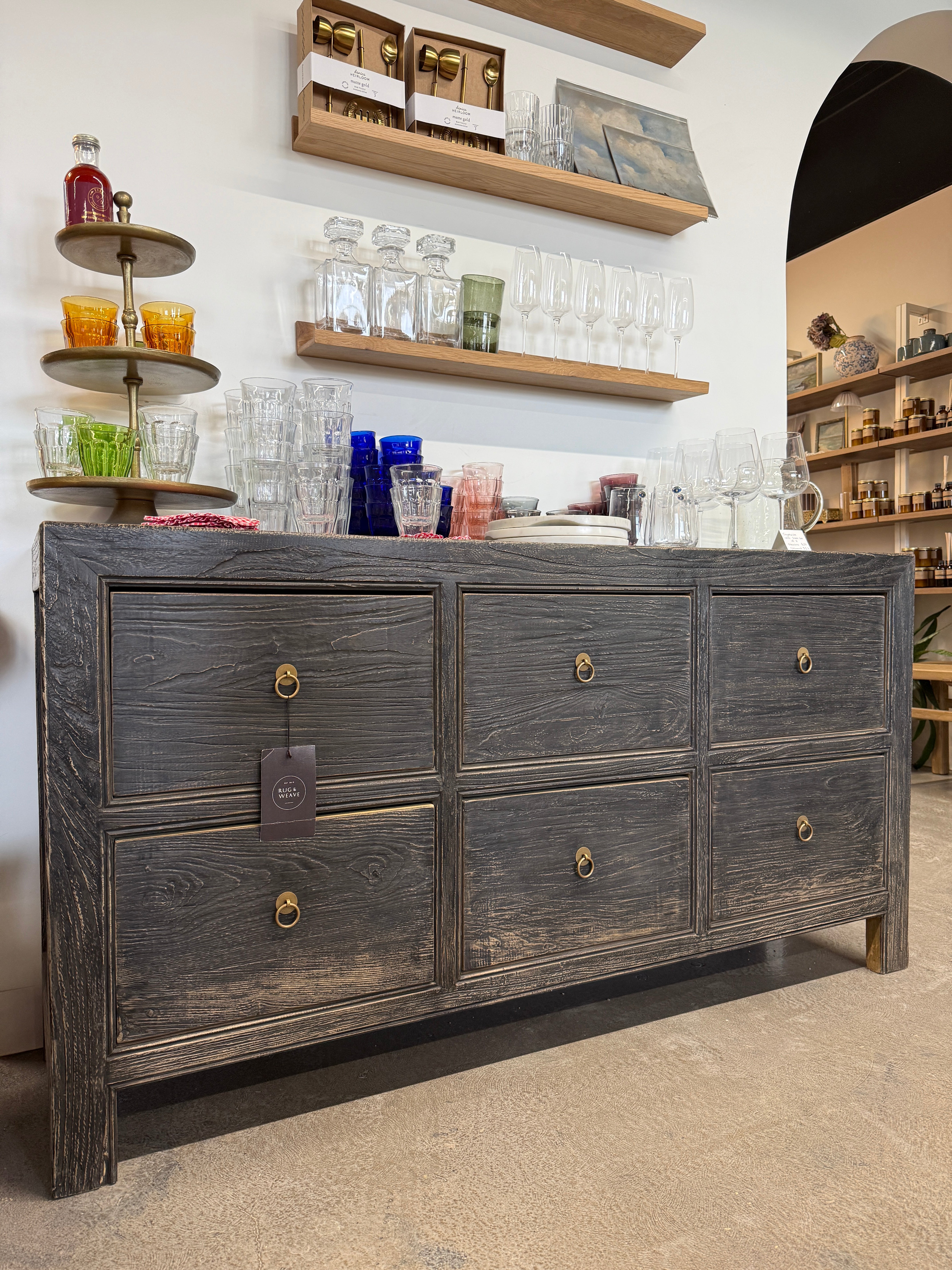 IM LADEN - Reid Sideboard aus Altholz - Verwittertes Schwarz - 6 Schubladen