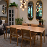The Kent Dining Table is crafted from solid wood in Black, Brown, or Natural finishes. Versatile and durable, it serves as a reliable centerpiece that coordinates with any dining aesthetic.