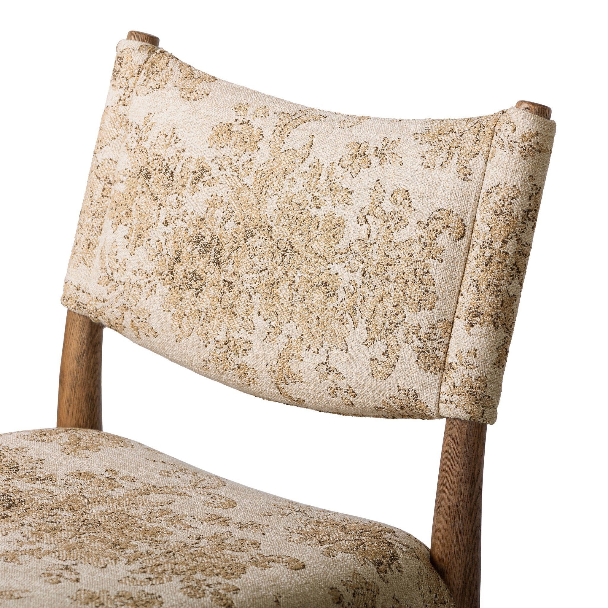 Dieser Barhocker vereint Retro-Ästhetik mit modernem Komfort und bietet so den Charme der Mid-Century-Ära auf idealer Stellfläche. Die großzügig gepolsterte Rückenlehne und Sitzfläche sind mit einem eleganten Damastmuster bezogen und gewährleisten sowohl optische Attraktivität als auch ergonomischen Komfort bei längerem Sitzen.