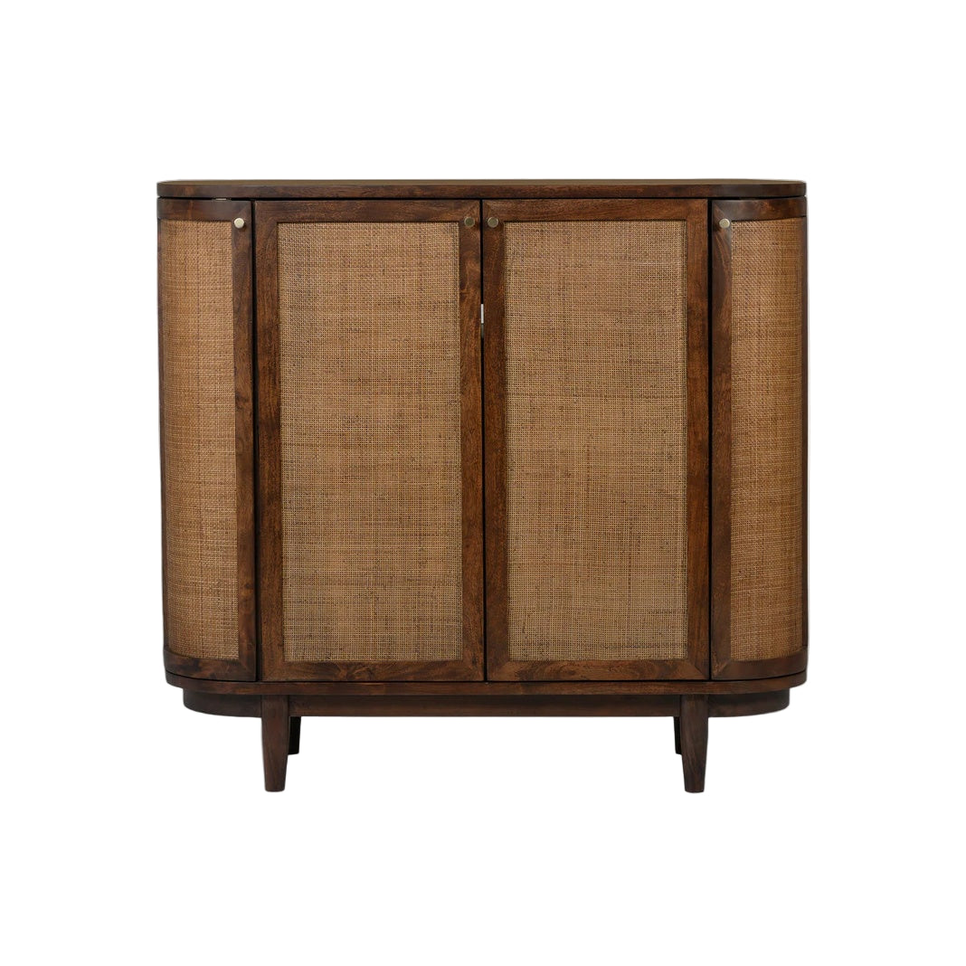 The Canguya Storage Cabinet exemplifies contemporary design through its graceful curved form and integrated cane detailing. This versatile piece combines visual softness with structural durability, offering sophisticated storage solutions that enhance any interior while maintaining an approachable, refined aesthetic.