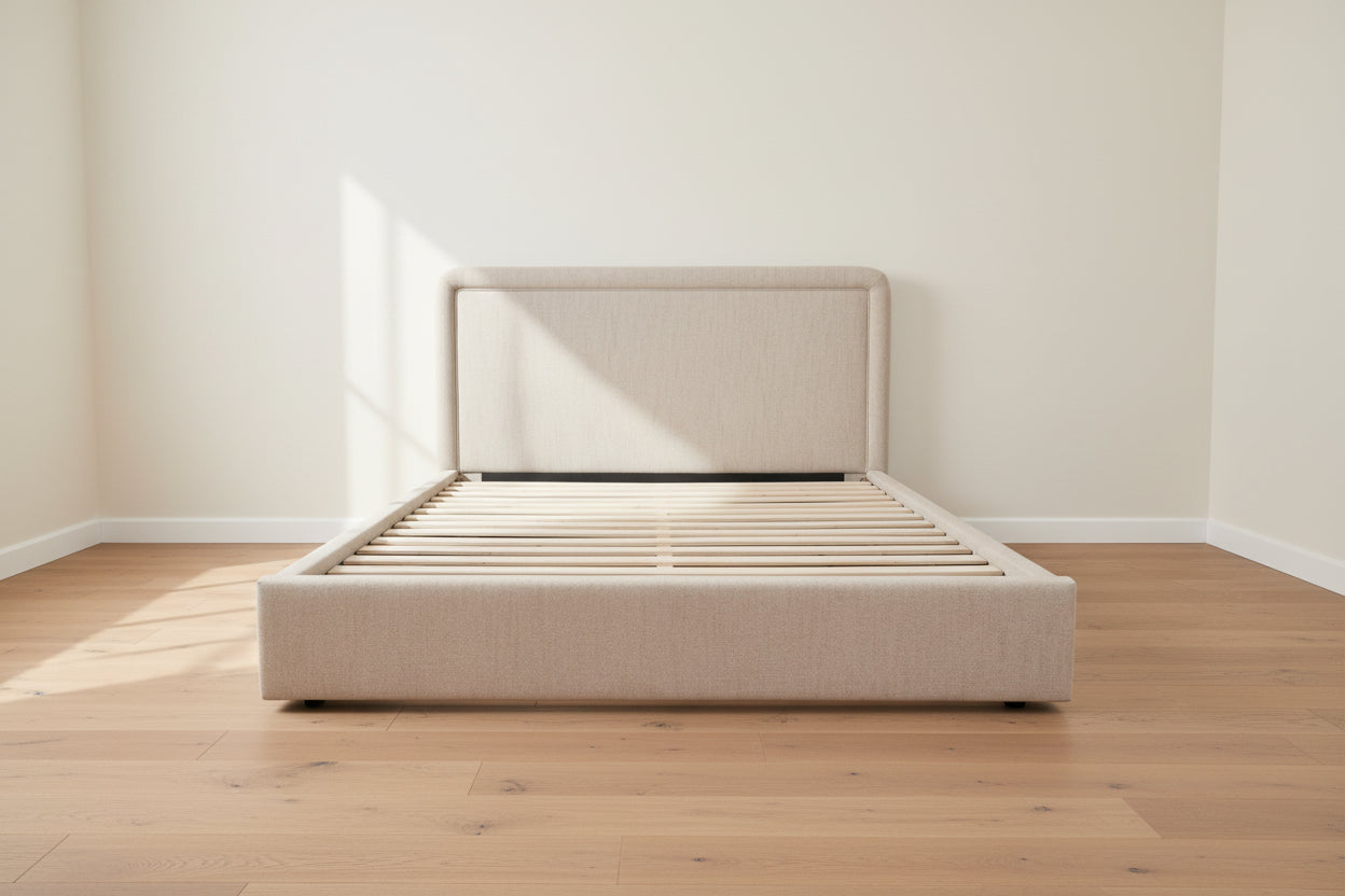 - Rounded design: Oversized headboard with curved edges and piped detailing creates a soft yet tailored silhouette with modern appeal.