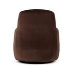 Compact and cozy, this high-back swivel chair with pillow-formed arms features contrast piping outlining its silhouette. Velvety performance fabric in a deep brown hue offers maximum comfort. The base is affixed to a 360-degree swivel for relaxed lounging. Performance fabrics are specially created to withstand spills, stains, high traffic and wear, ensuring long-term comfort and unmatched durability.