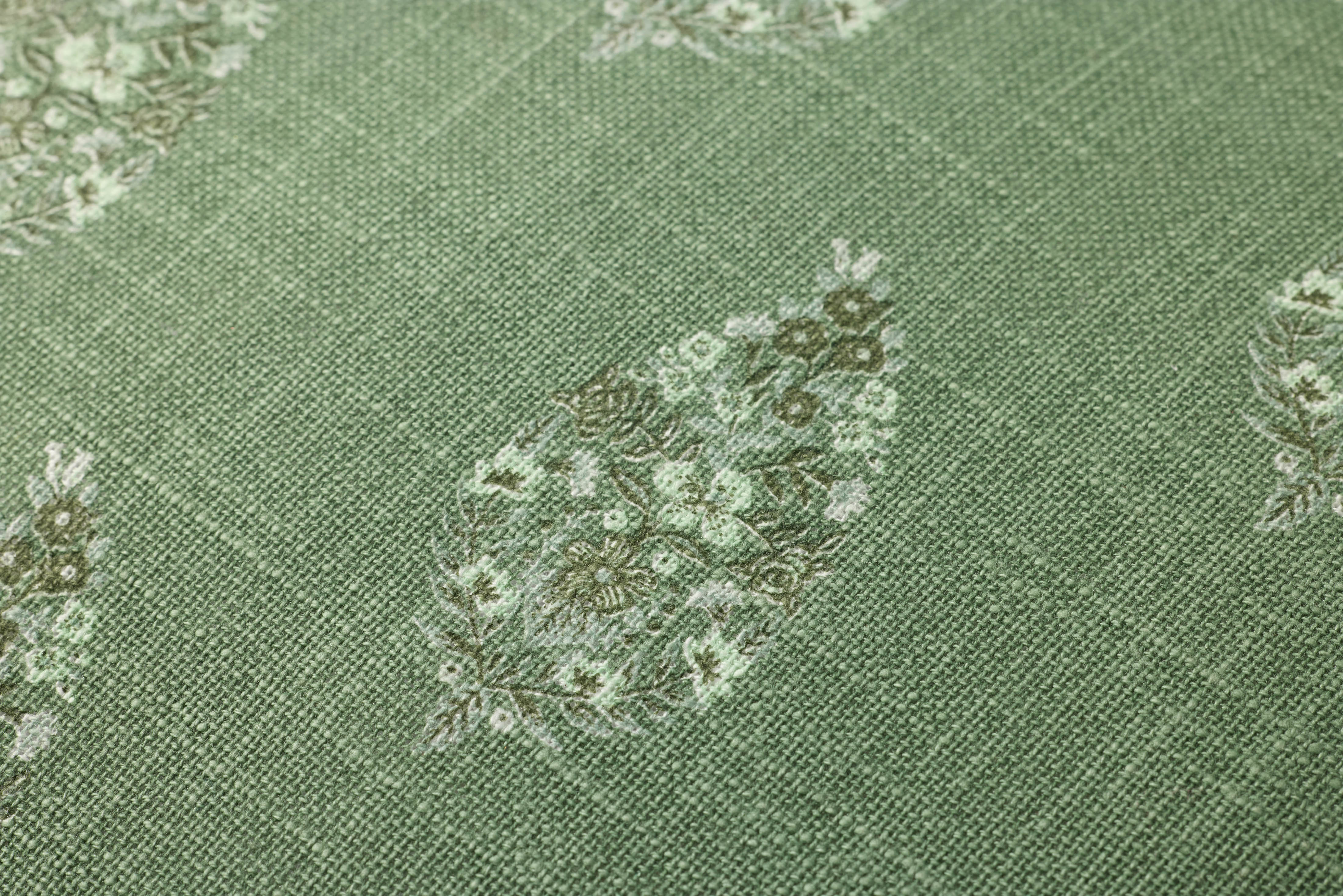 The Paisley throw pillow from Rifle Paper Co. x Loloi features paisley motifs made up of tiny embroidered green and white florals. The pillow is finished with feminine scalloped edges for intentional home decor. The pillow cover is woven of 100% cotton in India and measures 22” x 22”, a versatile size for living rooms and bedrooms.