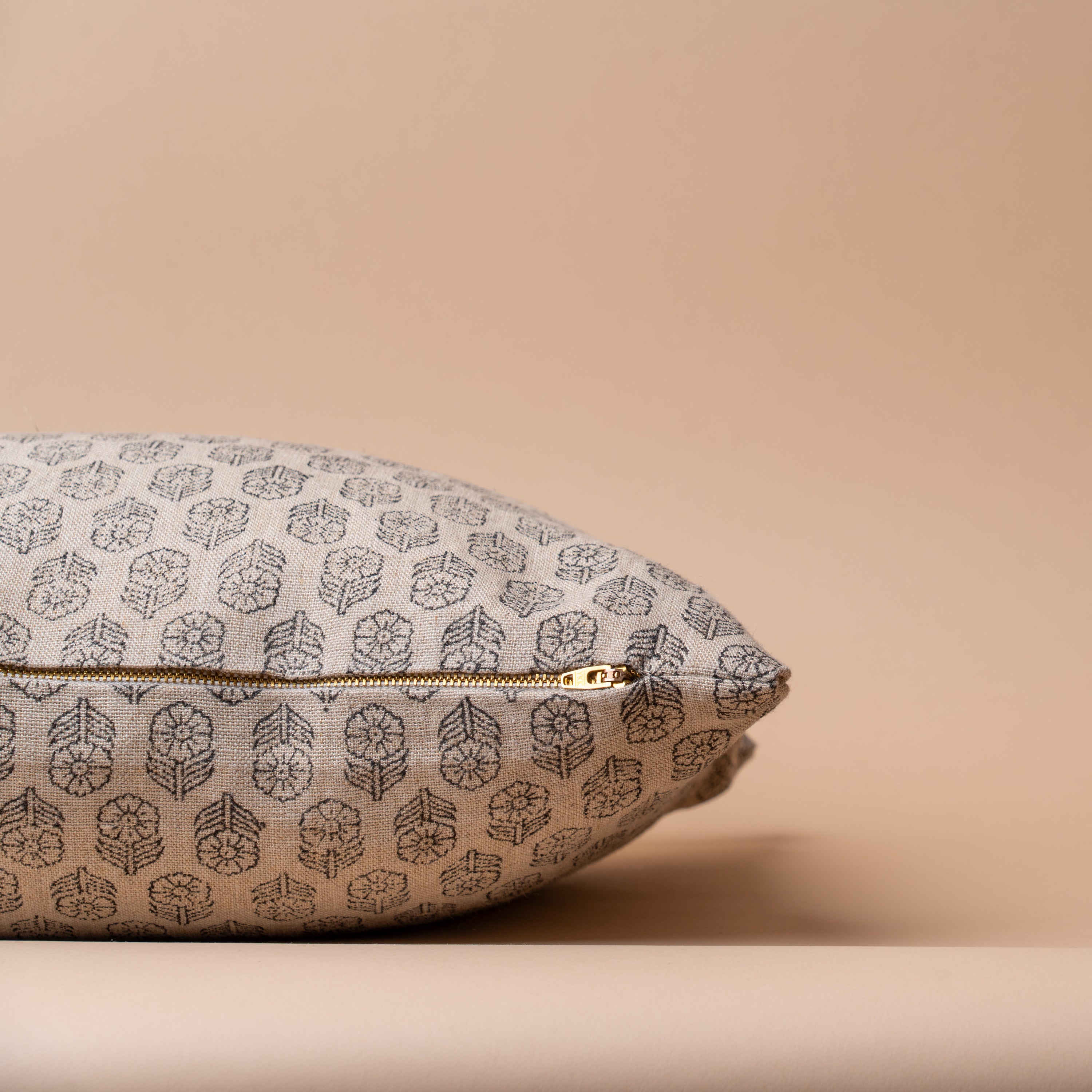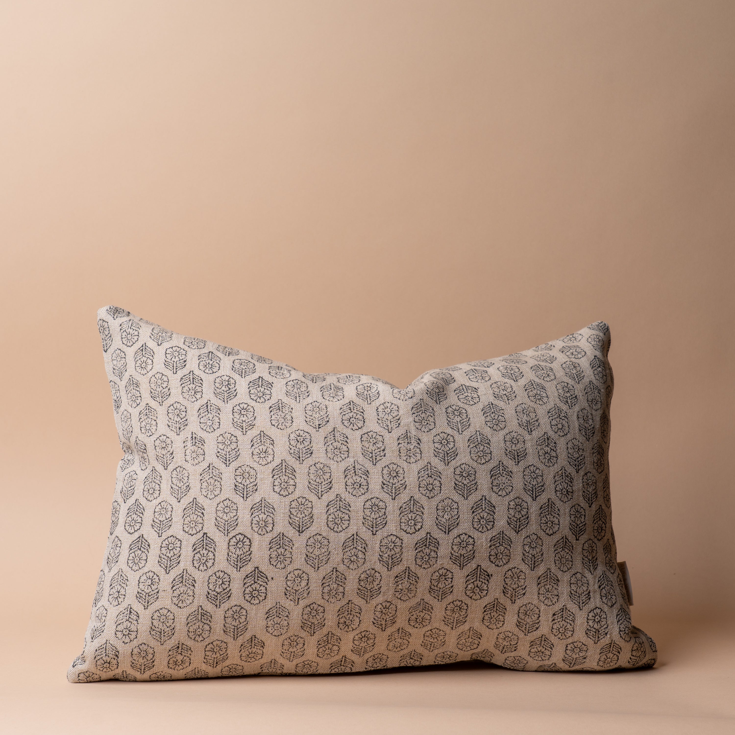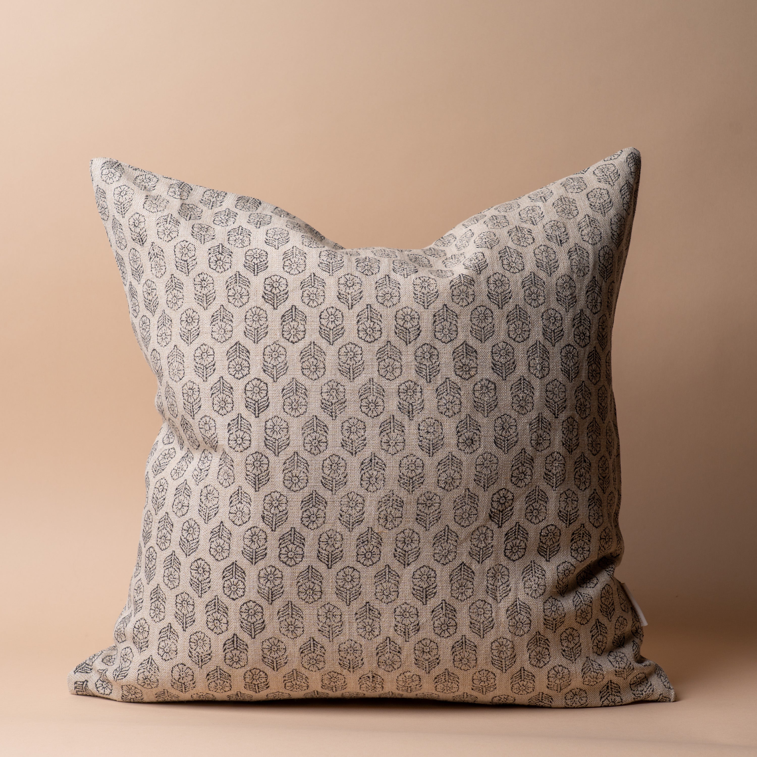 Anyone remember Dolly? We've brought her back and now she's double sided! This best selling pillow features a neutral floral block print on a rustic linen wrapped around the entire pillow. Style this charming pillow among other prints and patterns easily to create a unique and designer look.