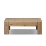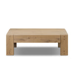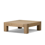 Built from thick-cut oak and veneers with an aged smoked finish, this farmhouse-inspired coffee table features chunky squared legs.