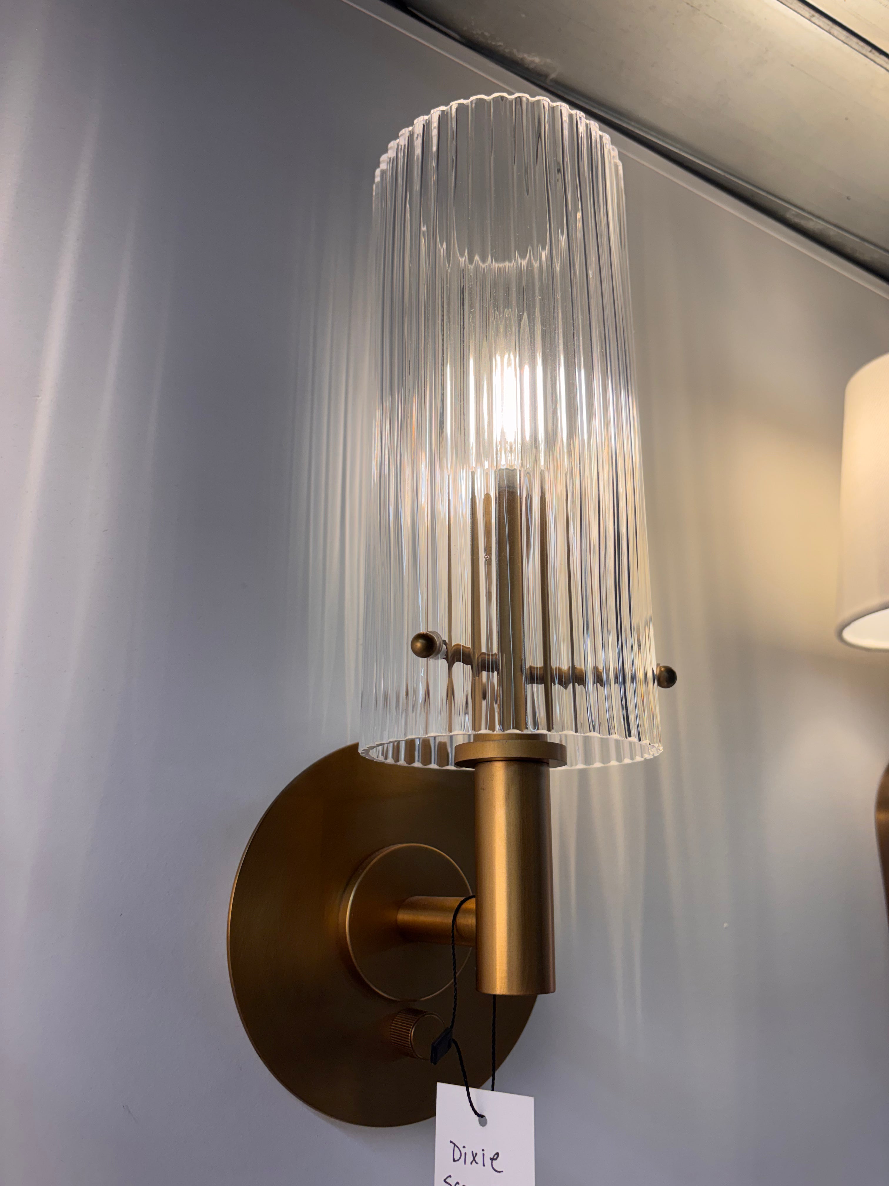 With a look reminiscent of classic old hotels, the Dixie Sconce has an ever-present glow that emanates from its fluted clear glass shade. The steel fixture is solid yet glamorous, adding a timeless quality to any room.