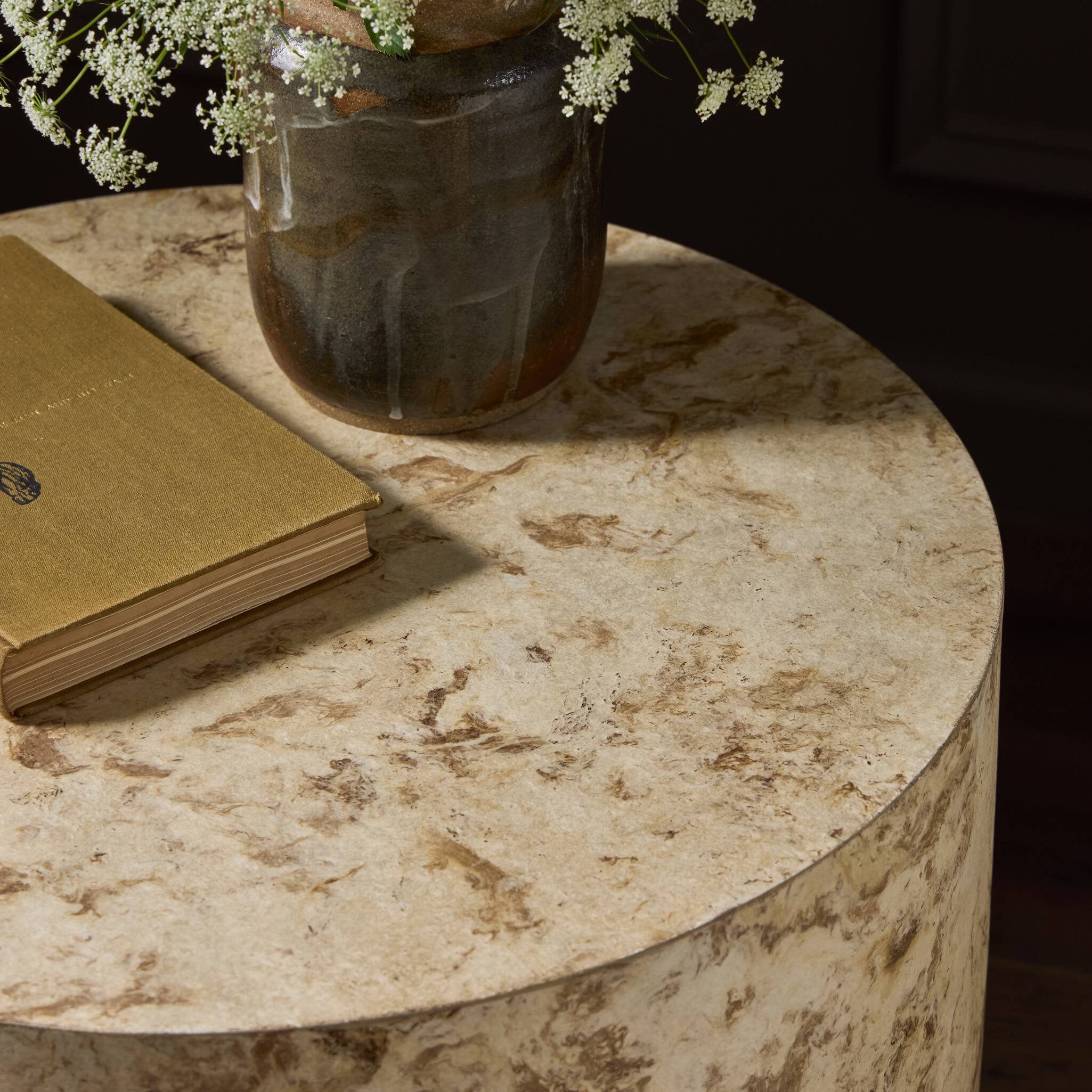 The Hudson Round End Table offers simple, functional style for any space. Constructed from solid pine with paper fiber accents, this compact piece provides a reliable surface for lamps, books, or décor. Its understated design fits seamlessly into various room styles while delivering the practical support you need in a living room or bedroom.
