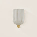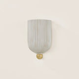 Inspired by the elegance of ancient Greek columns, the vertical ribbing on the Amira sconce creates a neoclassical moment on the wall. As the matte white Fluted Cream ceramic glaze pools in the grooves, an earthy bisque undertone adds a warm, artisanal note. Finished with an ornamental Aged Brass sphere, this petite uplight creates a calming, elevated mood in a bath or powder room.