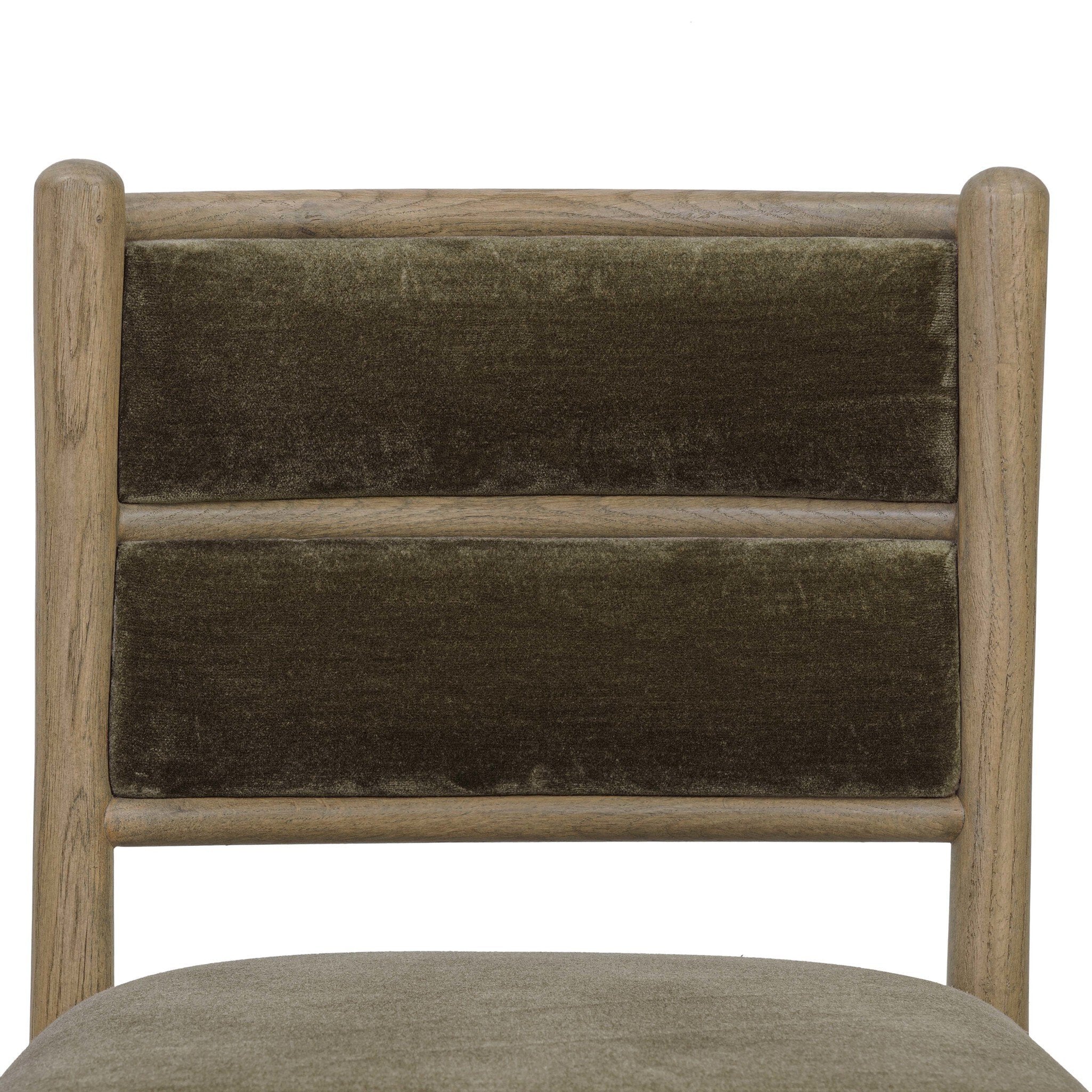 Channeled tufting adorns this sophisticated dining chair, drawing inspiration from Art Deco craftsmanship. The substantial construction features plush tufted upholstery paired with warm amber wood legs that taper gracefully, delivering both refined style and enduring comfort. A statement piece that balances vintage aesthetics with contemporary design sensibilities.