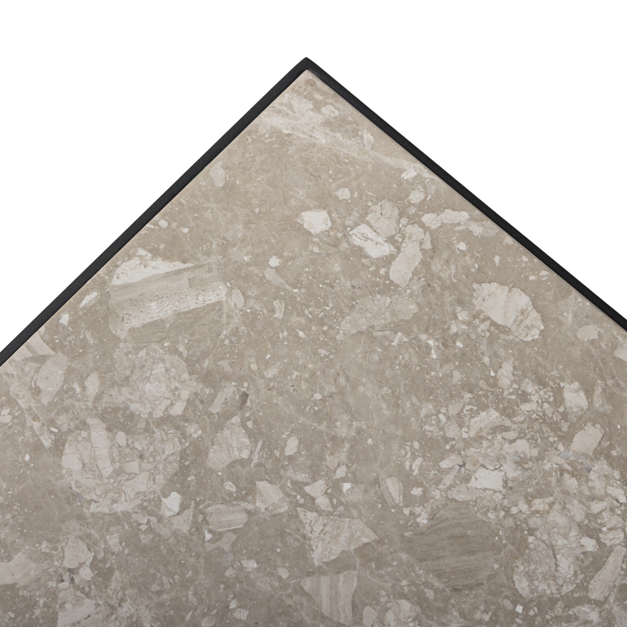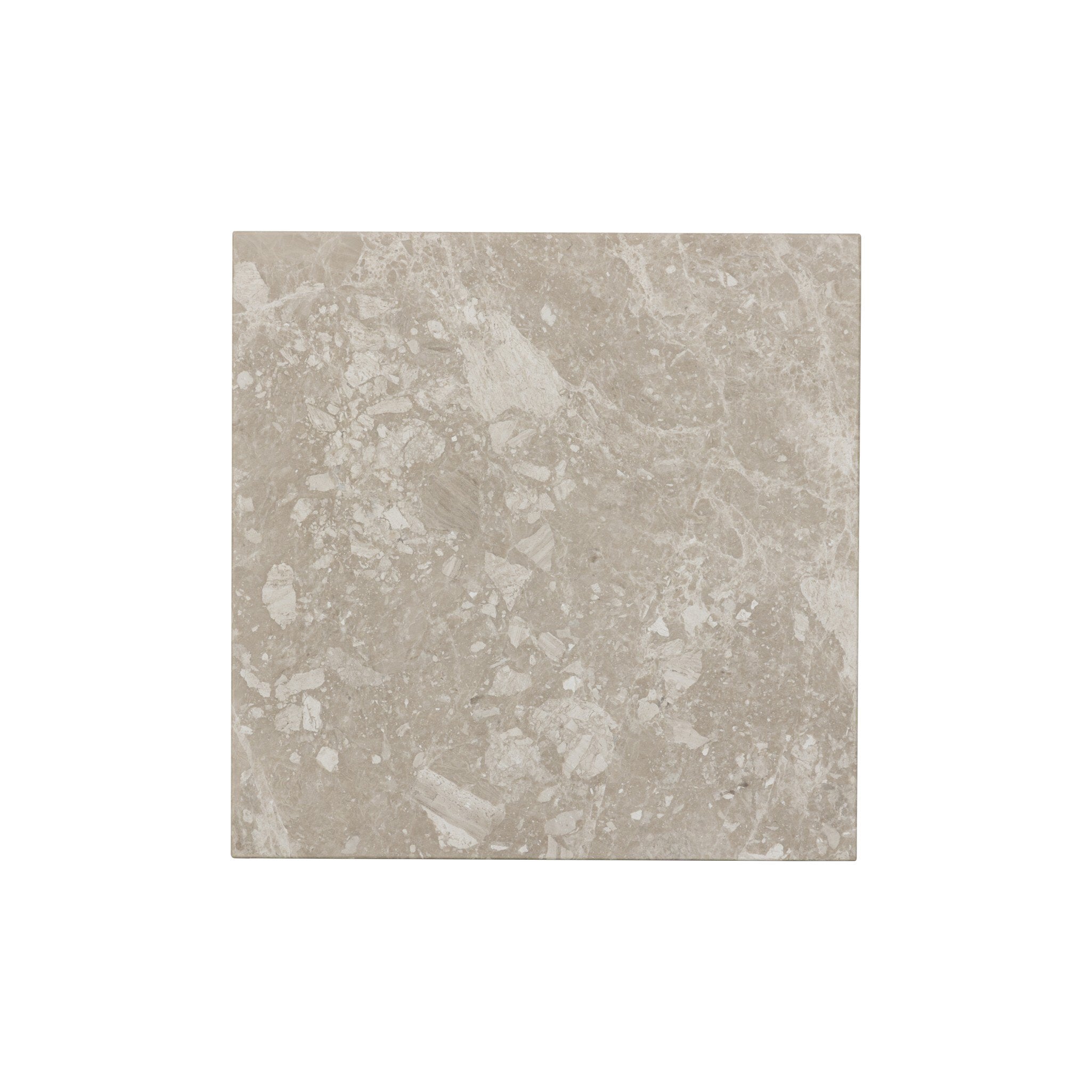 A slim, spare frame of hammered gunmetal pairs with rich marble, for a clean and timeless end table look. Stretchers attach to metal loops for an elevated design detail.