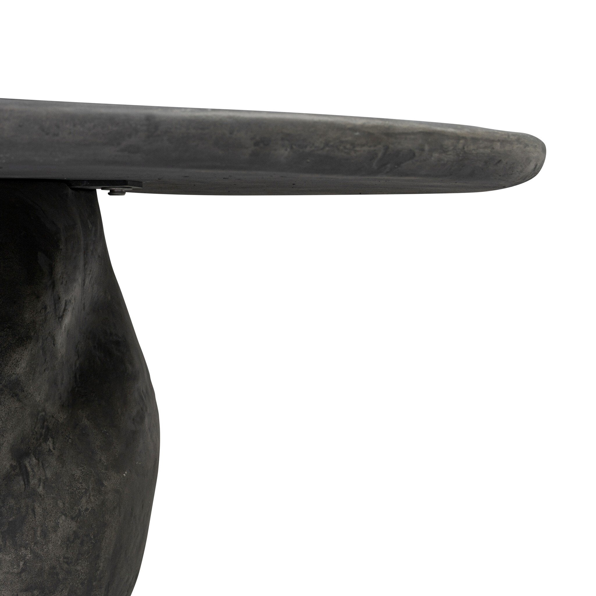 This sculptural coffee table showcases raw black concrete with distinctive surface variations, creating a striking focal point for any seating arrangement. Its organic form brings contemporary sophistication to modern interiors while the tactile finish adds visual depth and character to your living room.
