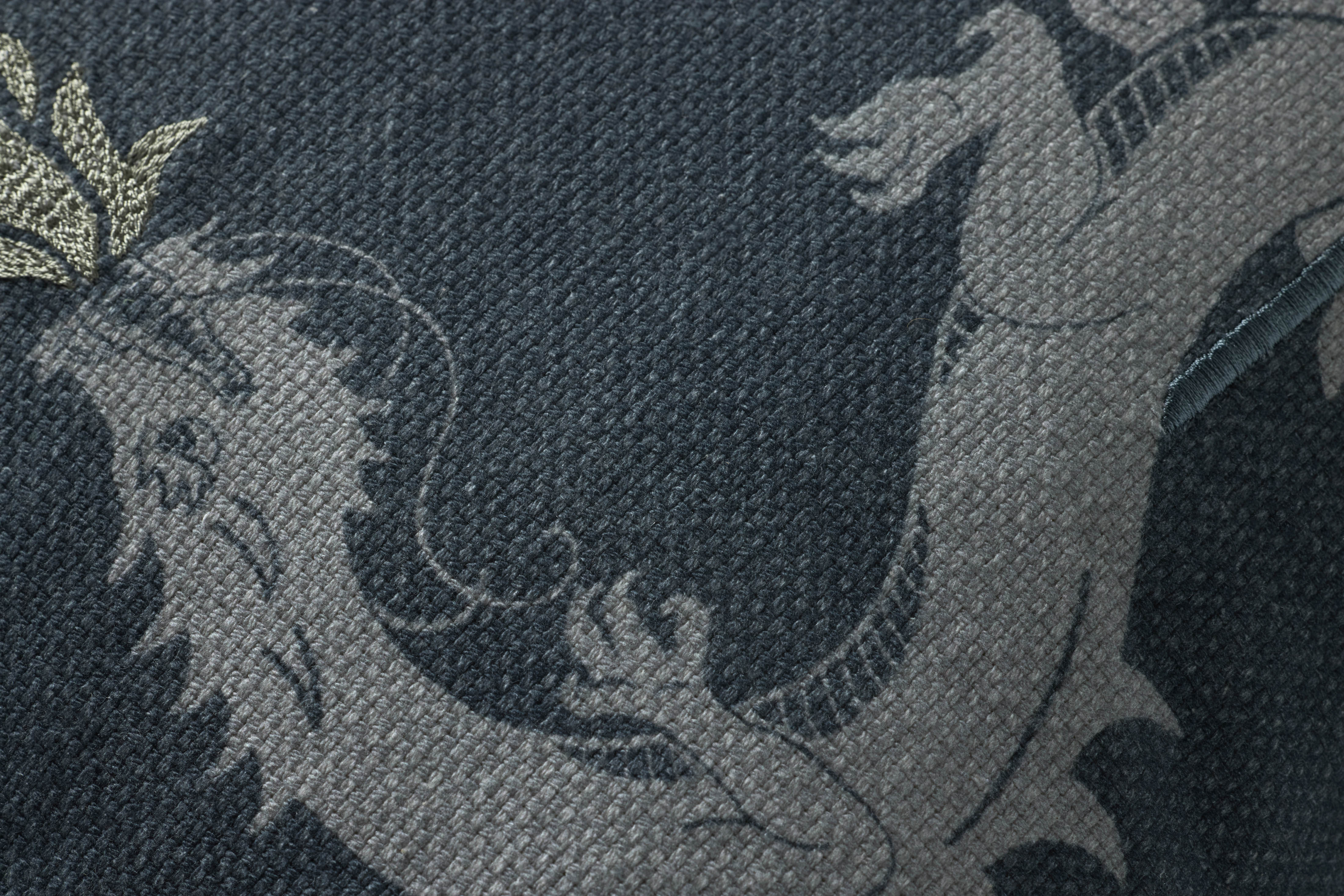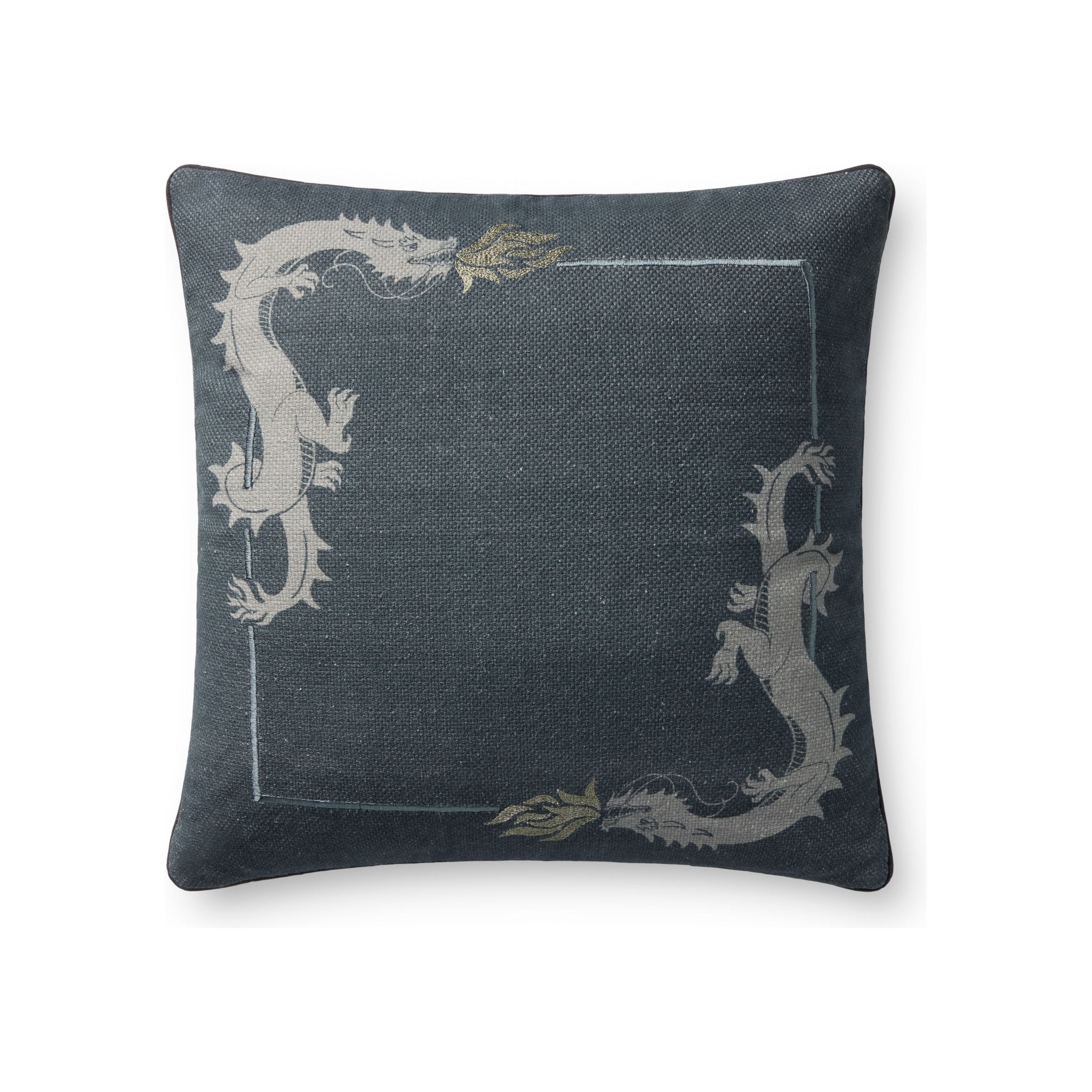 Elevate your space with this striking collaboration between designer Brigette Romanek and Loloi. Featuring intricately embroidered dragons that dance along the border, this pillow brings together bold artistry and refined elegance. Crafted from premium cotton with machine embroidery work completed in India, it's a statement piece that transforms any room into a gallery of sophisticated style.