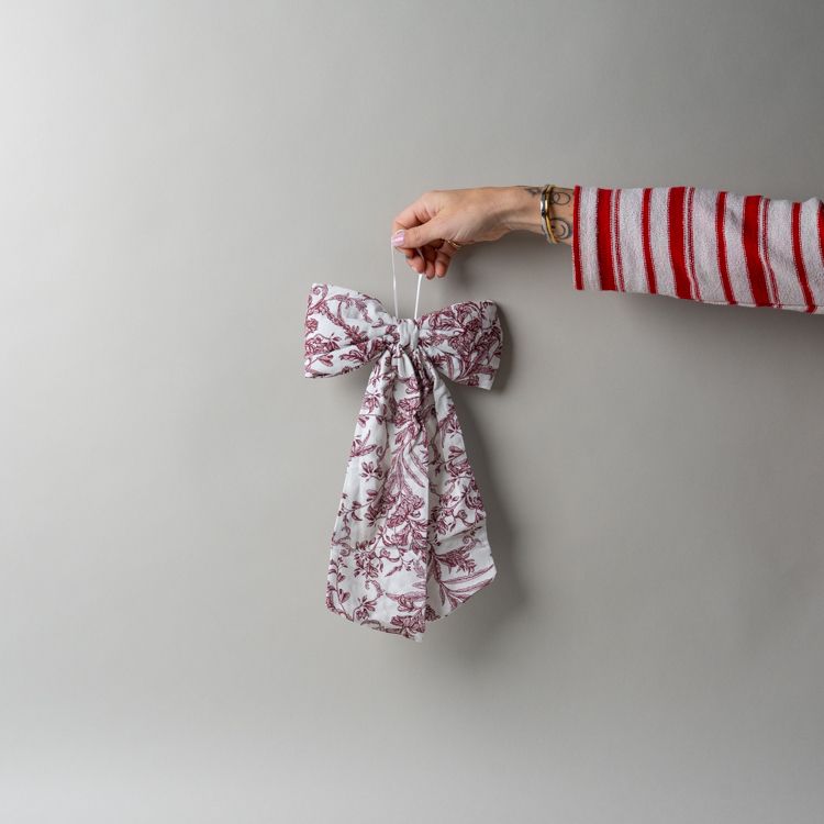 Crafted from soft, high-quality cotton and delicately finished with a silk ribbon centre, these charming bows add a touch of whimsy to any space. The sweet toile pattern creates an elegant yet playful accent perfect for nurseries, mantles, doorways, or seasonal decorations.