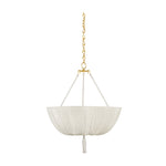 The Carolina pendant explores proportion and materiality with quiet confidence. The generous, soft form of the raw silk is eye-catching and special as it overlays a clear etched glass shade. The wrapped rods and matching tassel further add to the striking, airy material story. Accented by Aged Brass hardware, Carolina’s warm, luxurious presence makes for a dreamy piece in dining areas and bedrooms.