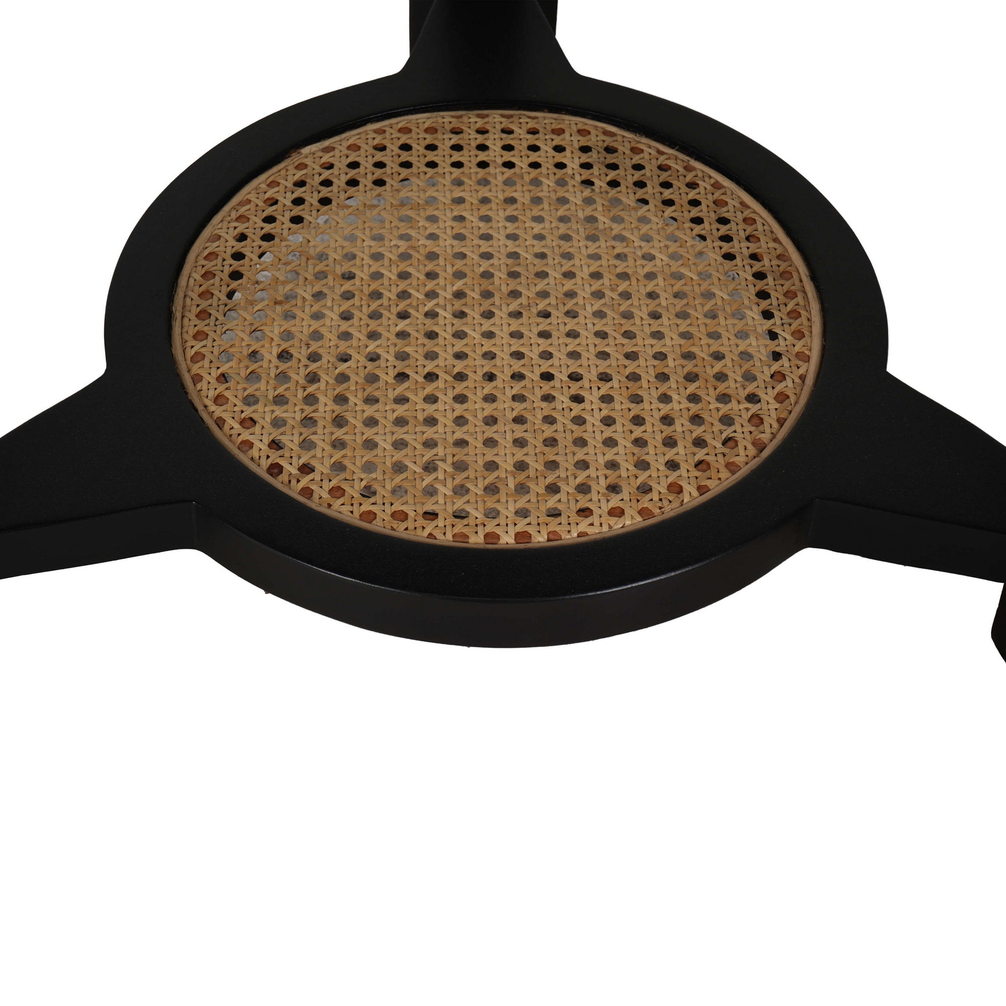 The Clover End Table features a sleek Batavia Black finish on a mahogany wood frame, complemented by natural rattan details. This combination offers a stylish balance of dark tones and organic textures, making it a versatile and elegant addition to any living space.