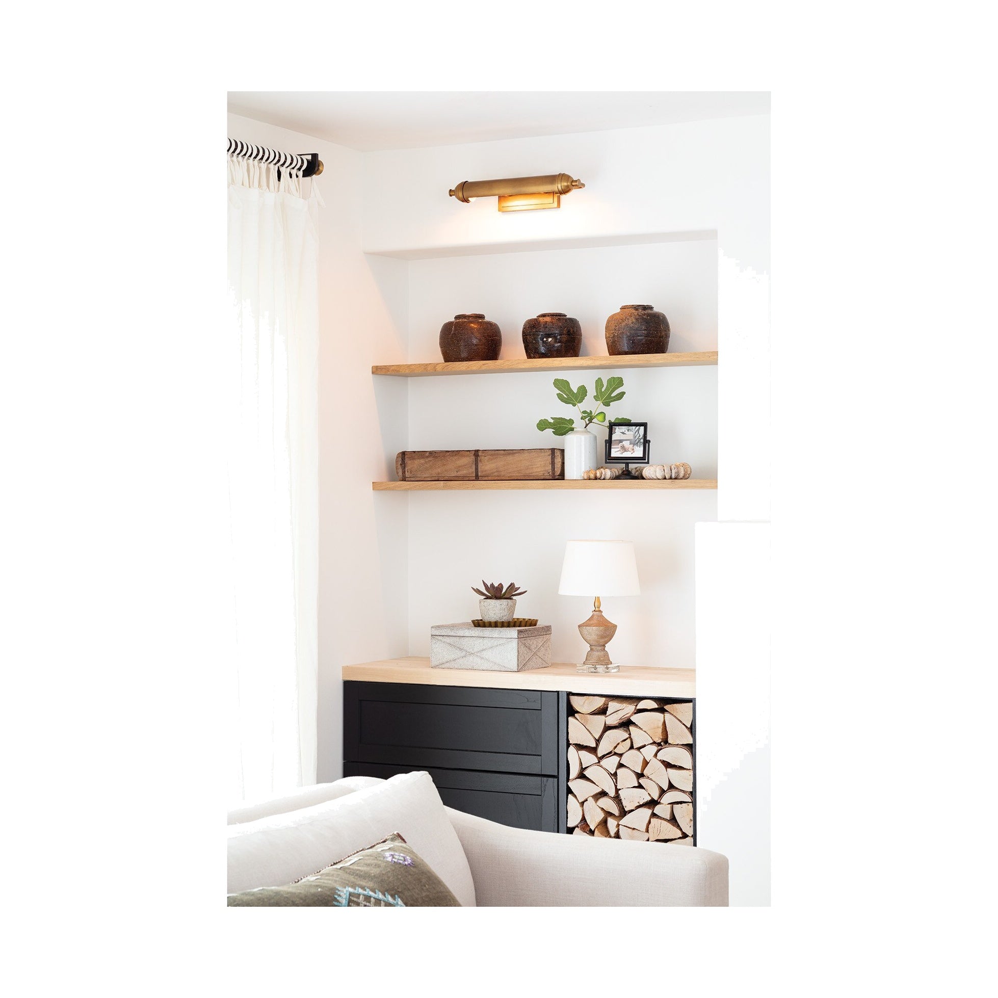 The Devon Picture Light offers a contemporary interpretation of a traditional design, featuring a streamlined silhouette and refined metal accents. Enhance the ambiance around a treasured artwork by placing this elegant lighting fixture in a bedroom, living area, or powder room.