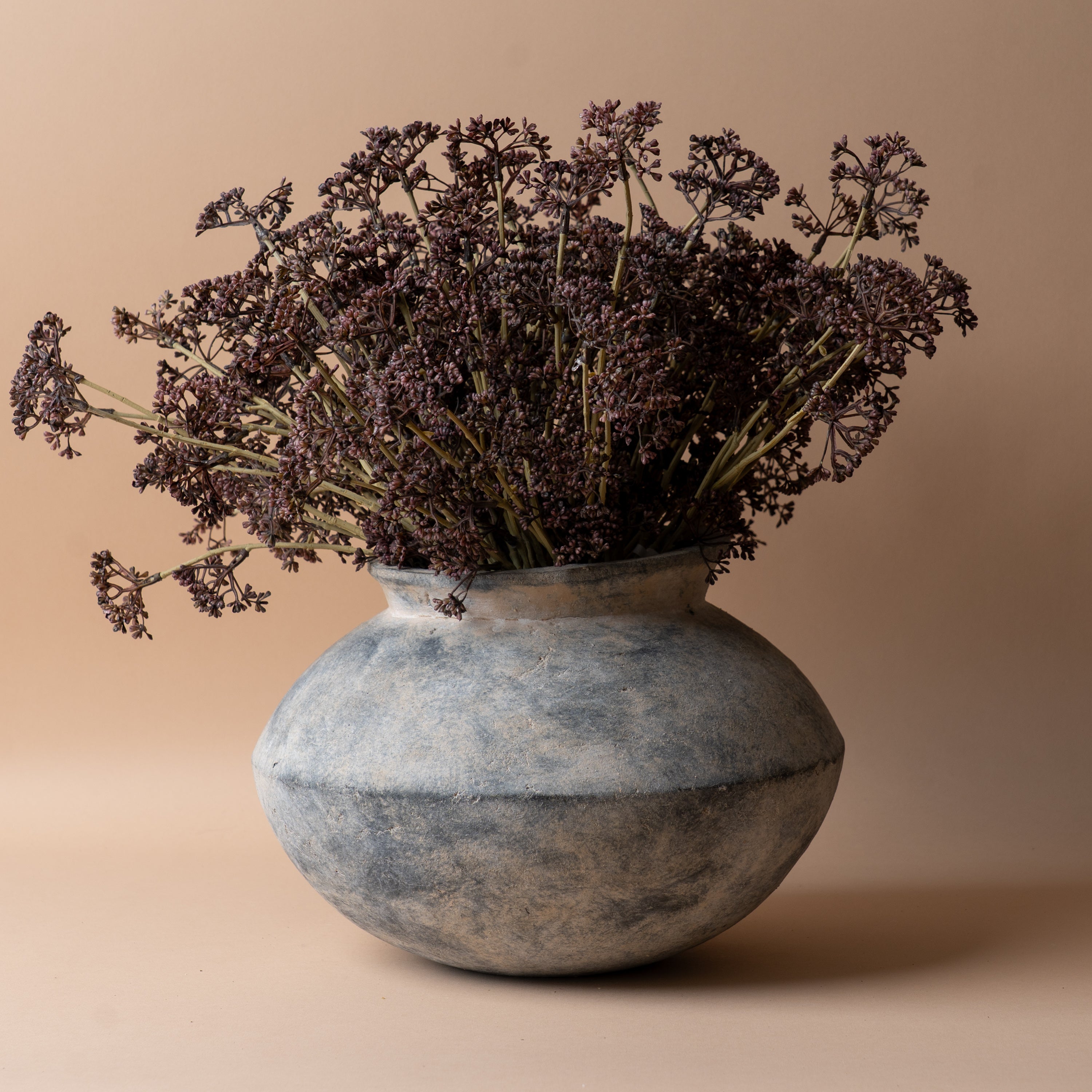 Make a bold splash with the Erro Terracotta Vase! Its rounded shape and soft grey-blue wash bring a playful charm to any space. Crafted from 100% terracotta, this vase combines earthy vibes with a timeless silhouette. Perfectly wide for shorter-stem botanicals, it lets your floral arrangements nestle in style, turning every display into a delightful conversation starter.