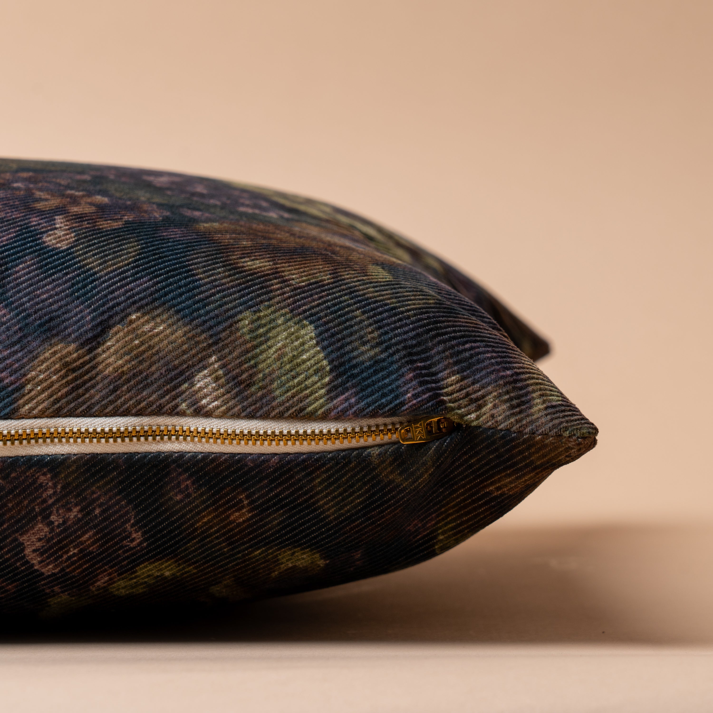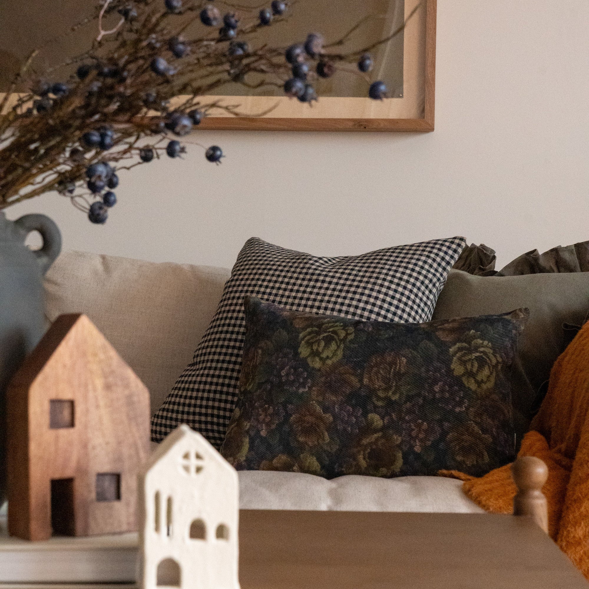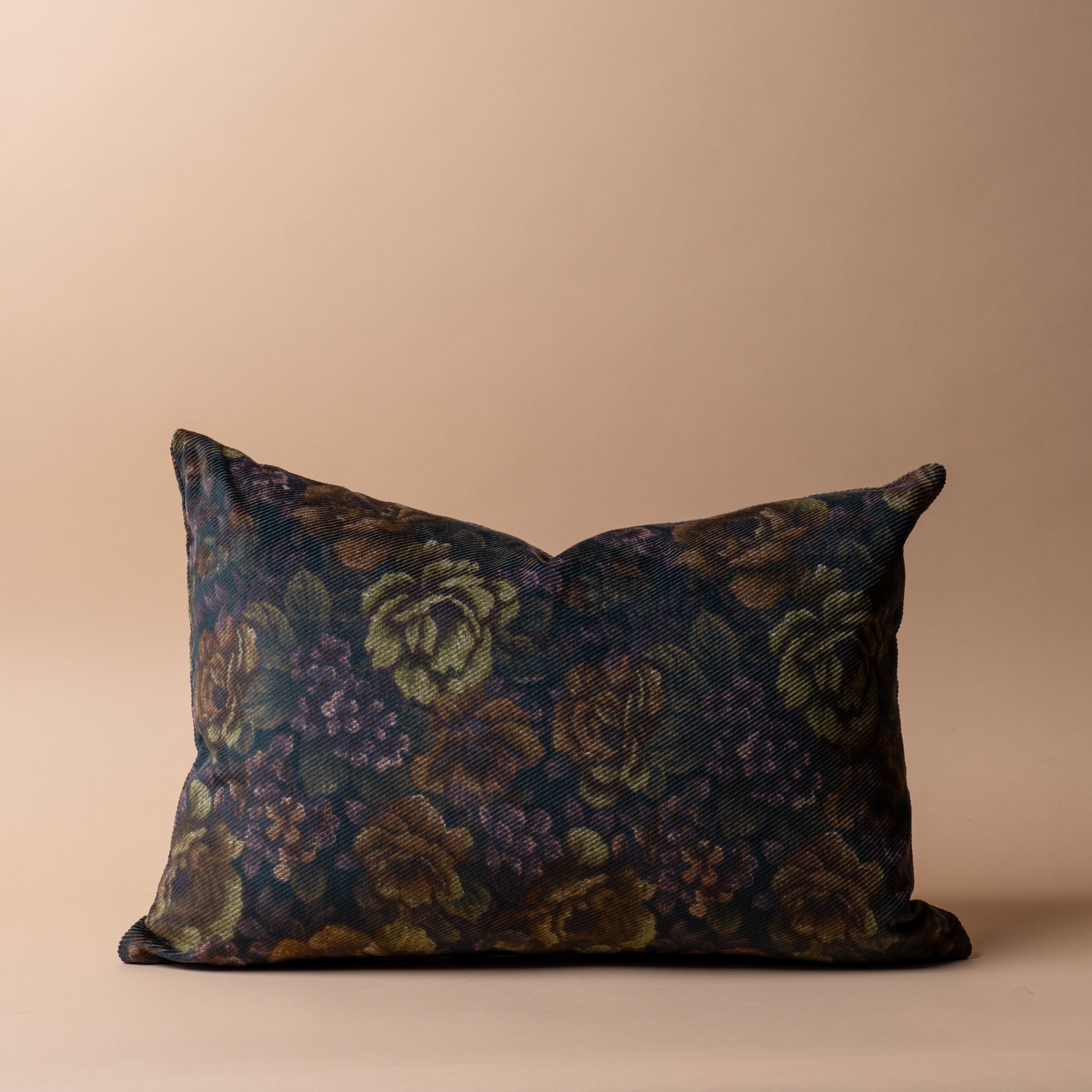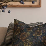 Our Estelle Pillow Cover showcases a moody floral motif on a dark background, printed in Japan. Tones of brown, plum and green all work together to create a vintage feel. Double sided for a truly luxurious feel, place this striking pillow anywhere you want to add some visual interest.