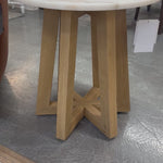 Light, bright and modern. An airy, sculptural star base of honey-finished oak supports a rounded tabletop of solid white marble, for a freshly versatile look.
