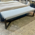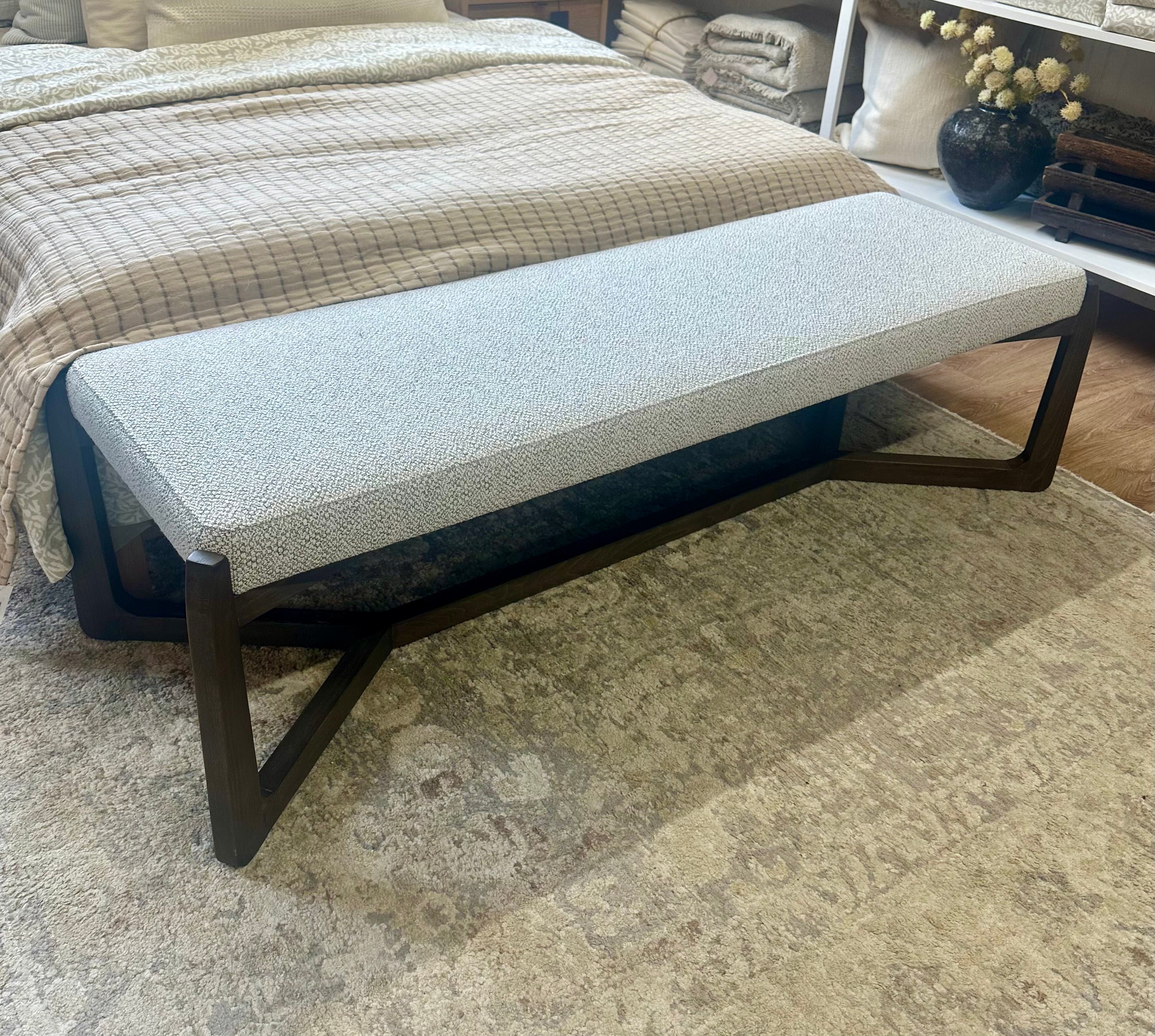 Ideal in an entryway, dining area or at the foot of the bed, an airy, cross-base beechwood frame supports textural bench-style seating, upholstered in a performance-grade fabric exclusive to Four Hands.