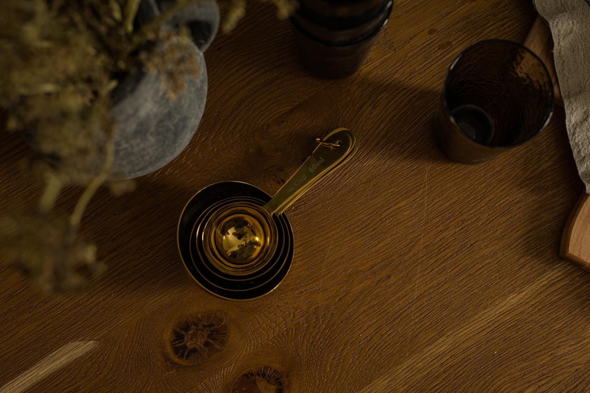 This set of measuring cups adds a touch of style to your kitchen, both as part of a decorative display, as well as a functional accessory to your favourite recipes. The shimmer and sleek design make for a beautiful addition to any kitchen.