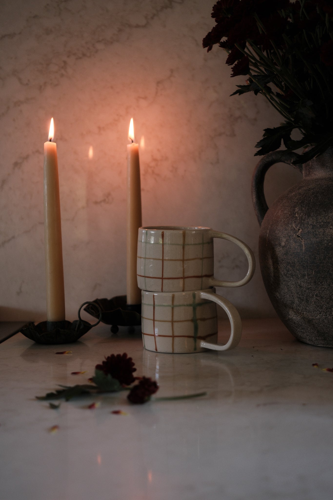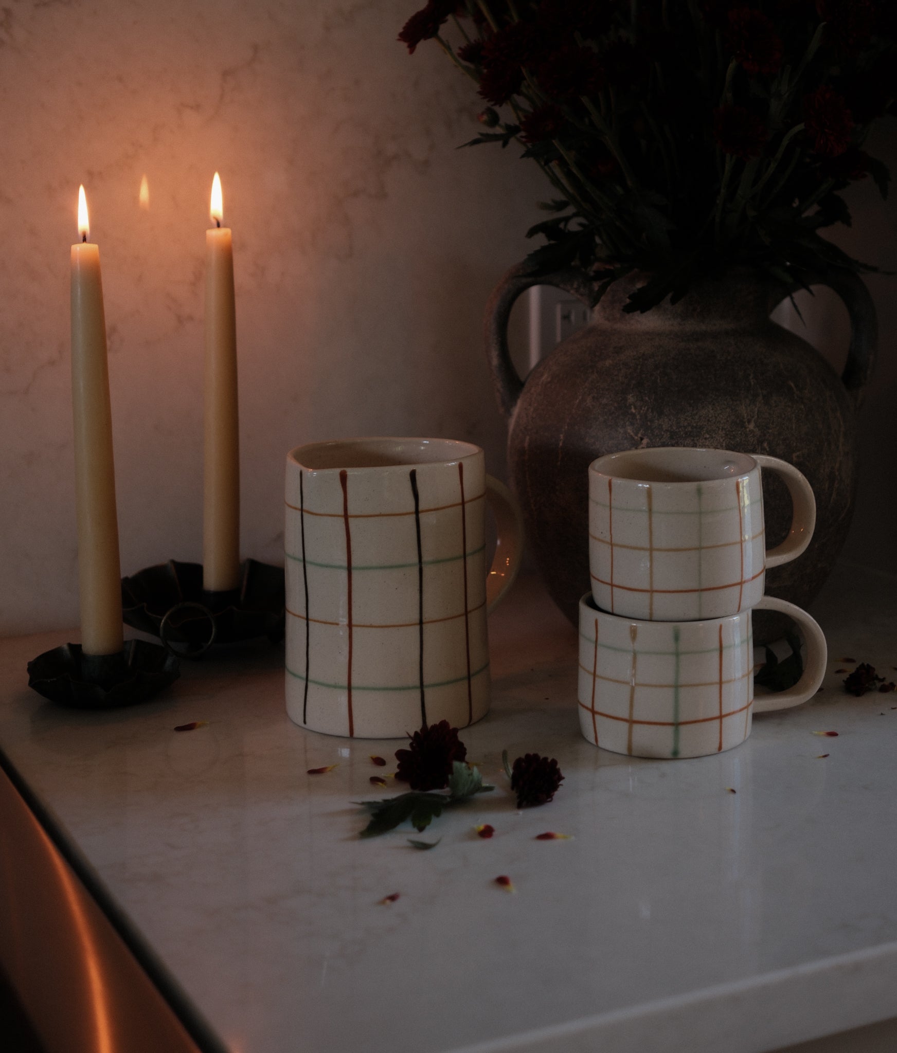 Start your cozy mornings with the Green & Brown Grid Pattern Mug, featuring an adorable grid design that adds a subtle yet refreshing pop of colour to your kitchenware. Crafted for both style and practicality, this mug makes every sip feel inviting.
