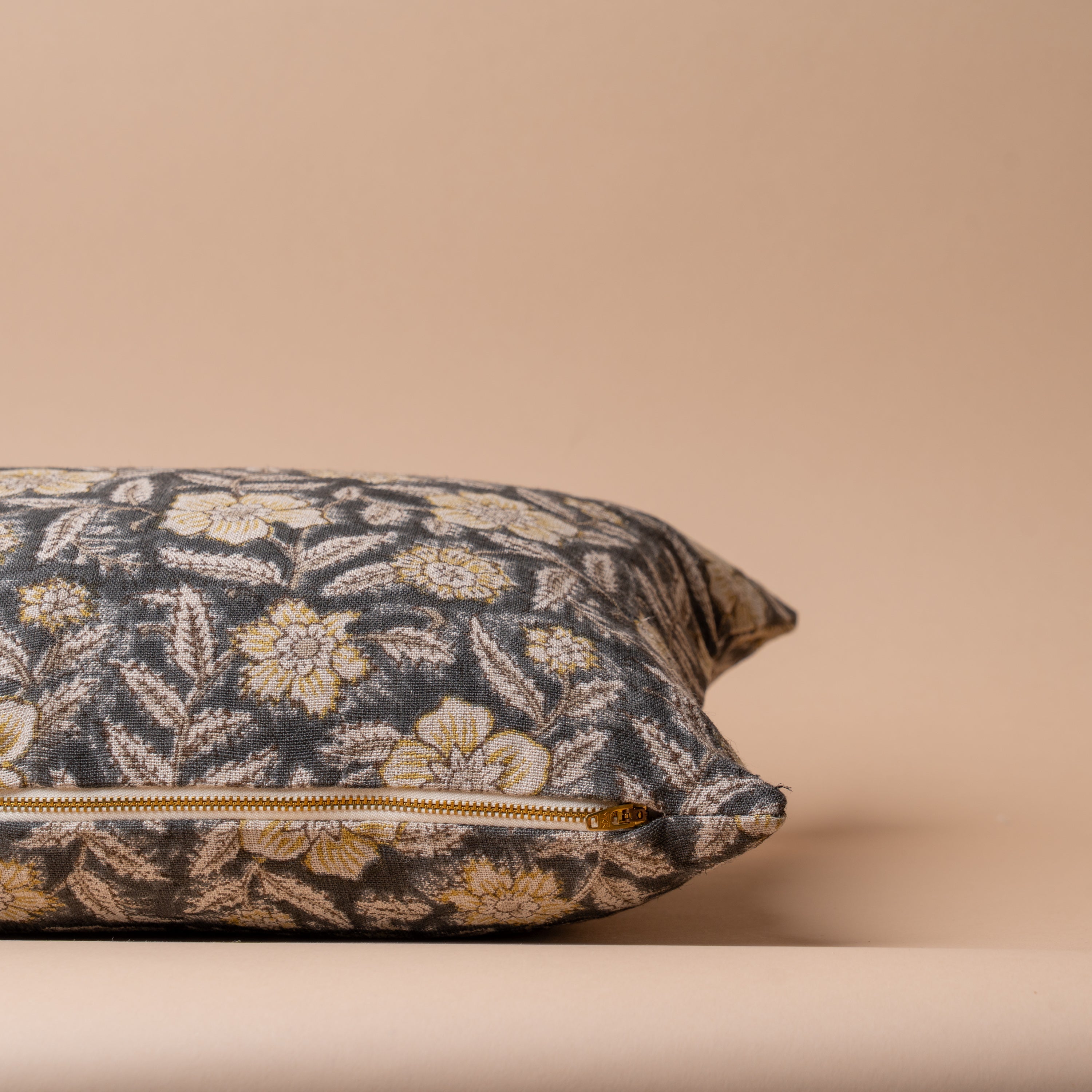 Looking to add some vintage inspired charm to your space? May we suggest our updated block print textile, hand printed in India by our artisan partners. Our Greta pillow cover features a rustic and charming floral print of greens and yellows. Now double sided, this cover offers a designer look. Style this cool toned staple in any space needing some visual interest and a hint of colour.