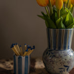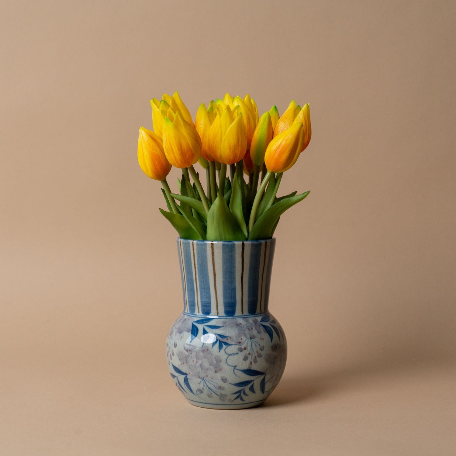 Crafted from high-quality ingdezhen stoneware, this exquisite vase showcases a hand-painted design of blue and wisteria flowers, evoking the elegance of classic Chinese literary vases. Perfect fresh flowers, or as a styling piece.