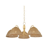 The Katniss collection modernizes a classic form with handwoven vintage natural wicker shades shaped like mushrooms, inspired by organic, botanical themes. Its Aged Brass frame features gracefully curved arms that complement the shades for an elegant detail. Offered as a sconce or a chandelier with three or five lights, Katniss introduces both texture and playful charm to any interior.