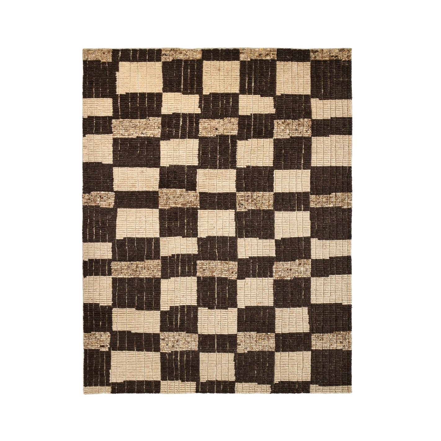 Checkered with undyed wool, this hand-knotted rug captures the beautiful hand-made effect that makes each piece one of a kind. Cream, brown and natural wool colors come together for this Moroccan-inspired design. The durable rug is crafted to wear beautifully over time. Due to handcraftsmanship, slight variations in sizing may occur.