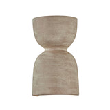 Inspired by the look of stone, the Natalia sconce has an organic, flexuous form with an all-over earthy ceramic Windy Dune finish. The soft, weathered texture brings the expressive shape to life, lending a found-object look. Equipped with two lights and Aged Brass inner hardware, this petite sconce serves as a unique wall washer that can be used in a variety of spaces.