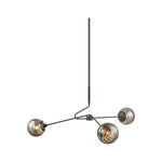 The Nyla chandelier is a modern exploration of form with graphic arms, irregular orb shades, and atmospheric smoke glass. To create the mobile-like silhouette, three carefully balanced arms extend dramatically in space. The slender minimalist frame is made relatable by the soft shaping of the glass. Choose from an Aged Brass finish for a brighter look, or True Bronze for a more industrial effect.