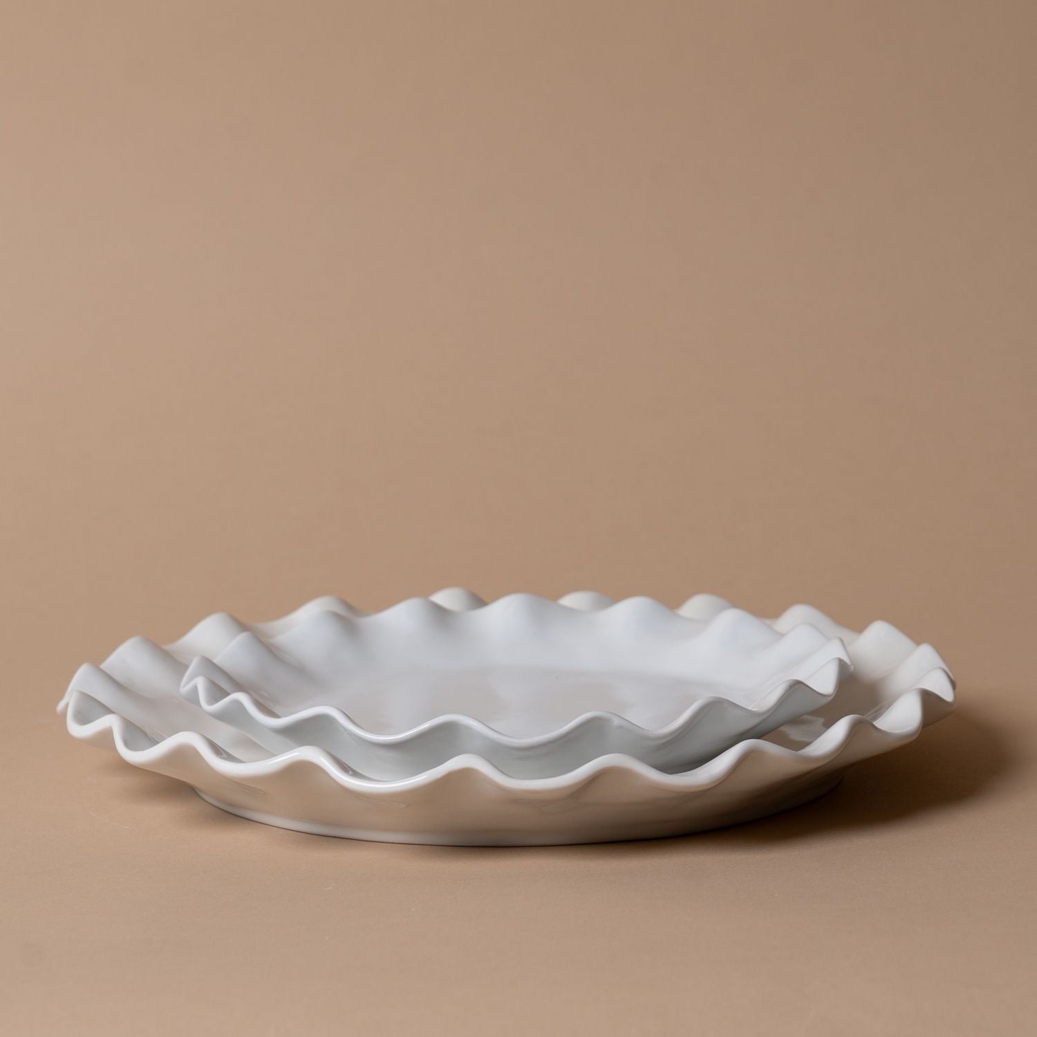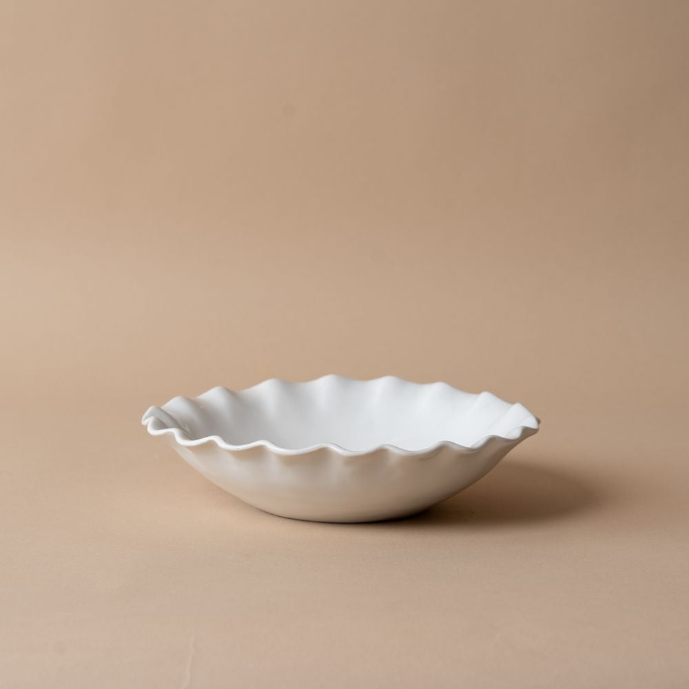 Indulge in this stunning dining collection, featuring delicately crafted white-washed stoneware inspired by the natural beauty of seashells and ocean waves. With its organic design, it is perfect for mixing and matching with any of your other collected dining pieces, creating a truly captivating gathering experience.
