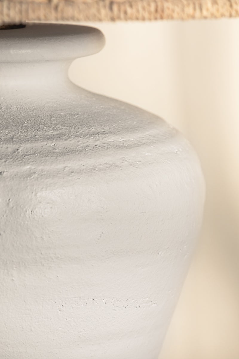Designed in honor of the matriarchal figure in Julie Dash's "Daughters of the Dust," the Pezante lamp is a vision of regal, coastal elegance. Elements of the novel are translated into design features, with the ceramic urn-shaped base inspired by white dresses and the bleached Abaca shade recalling straw hats. Rooted in heritage yet with contemporary simplicity, Pezante writes a new story for modern spaces. Part of our Loft and Thought collection.