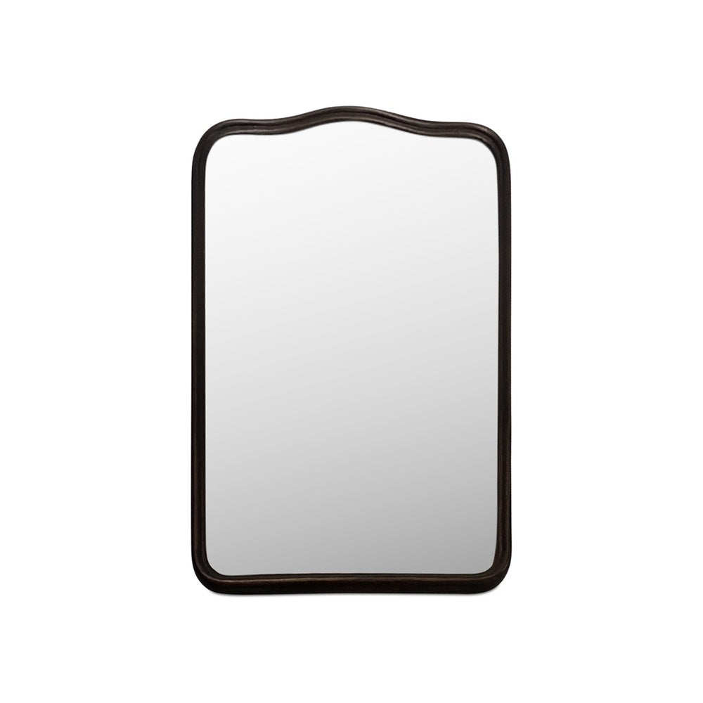Quay Mirror elevates mirror design through sculptural form and meticulous material execution. Cast from solid aluminum and finished in blackened bronze, the frame features undulating scalloped edges that establish subtle visual cadence while departing from conventional rectilinear conventions. Visible casting pinholes serve as authentic markers of the artisanal production process, introducing tactile authenticity and dimensional interest. This mirror functions simultaneously as reflective surface and architectural statement, commanding wall presence through the synthesis of graceful curvature and substantial material presence.