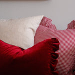Red Velvet Ruffle Pillow Cover