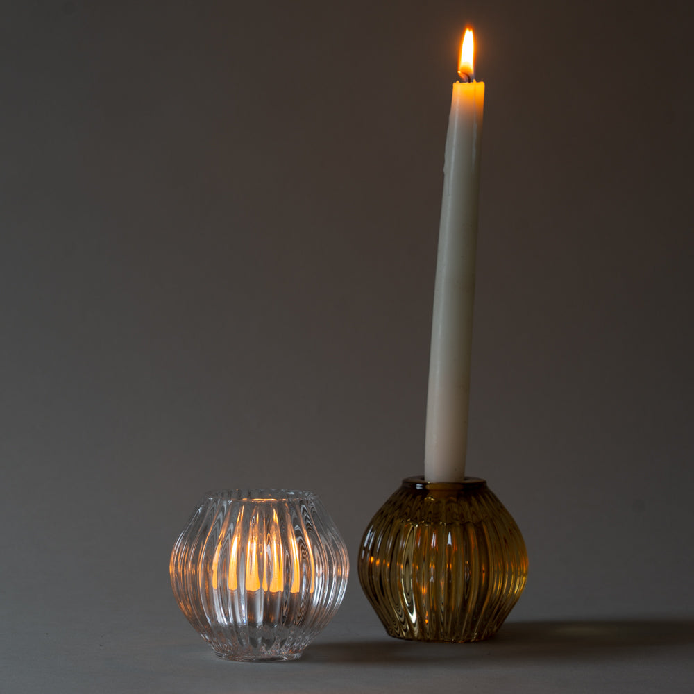 Ridged Glass Taper/Votive Holder