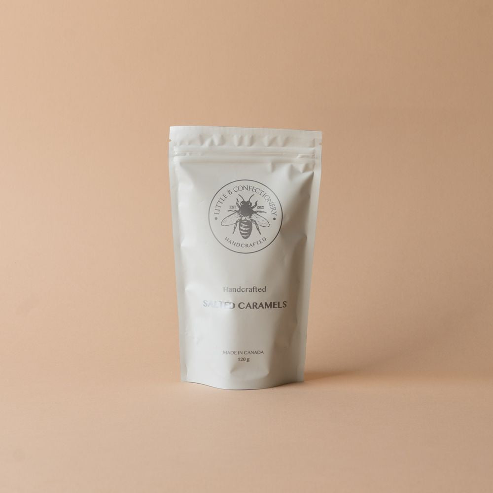 Crafted in small batches, these caramels are hand-cut and individually wrapped, using premium Canadian ingredients. Each piece is delicately finished with flake sea salt from Vancouver Island Salt Co., highlighting a proudly Canadian-sourced confection.