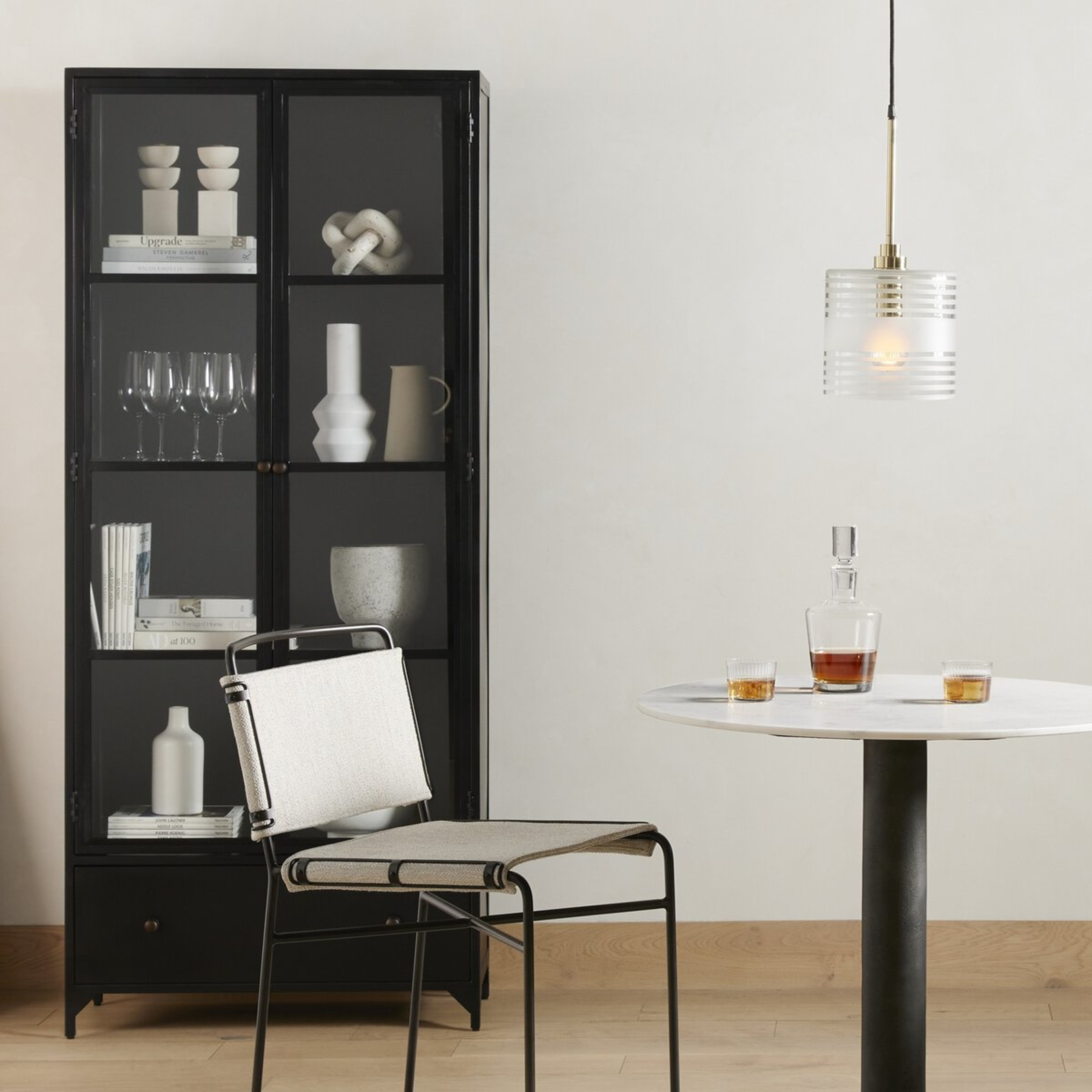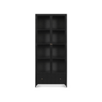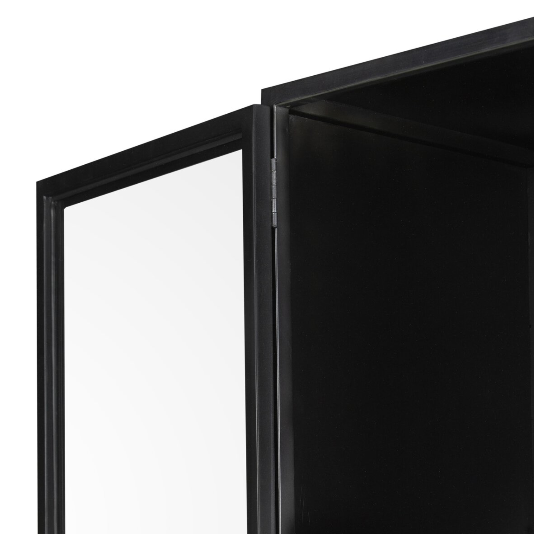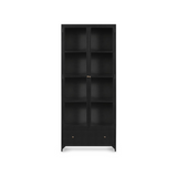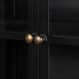 The Shadow Box Display Cabinet combines classic design with modern craftsmanship, featuring solid iron sheeting in a sleek matte black finish accented by brass hardware. Its streamlined silhouette, inspired by traditional shadowboxes, offers an elegant way to showcase barware, books, and collectibles. Dual drawers provide discreet storage, keeping your space organized without compromising style. This cabinet is a refined addition for those seeking both functionality and timeless sophistication in their interiors.
