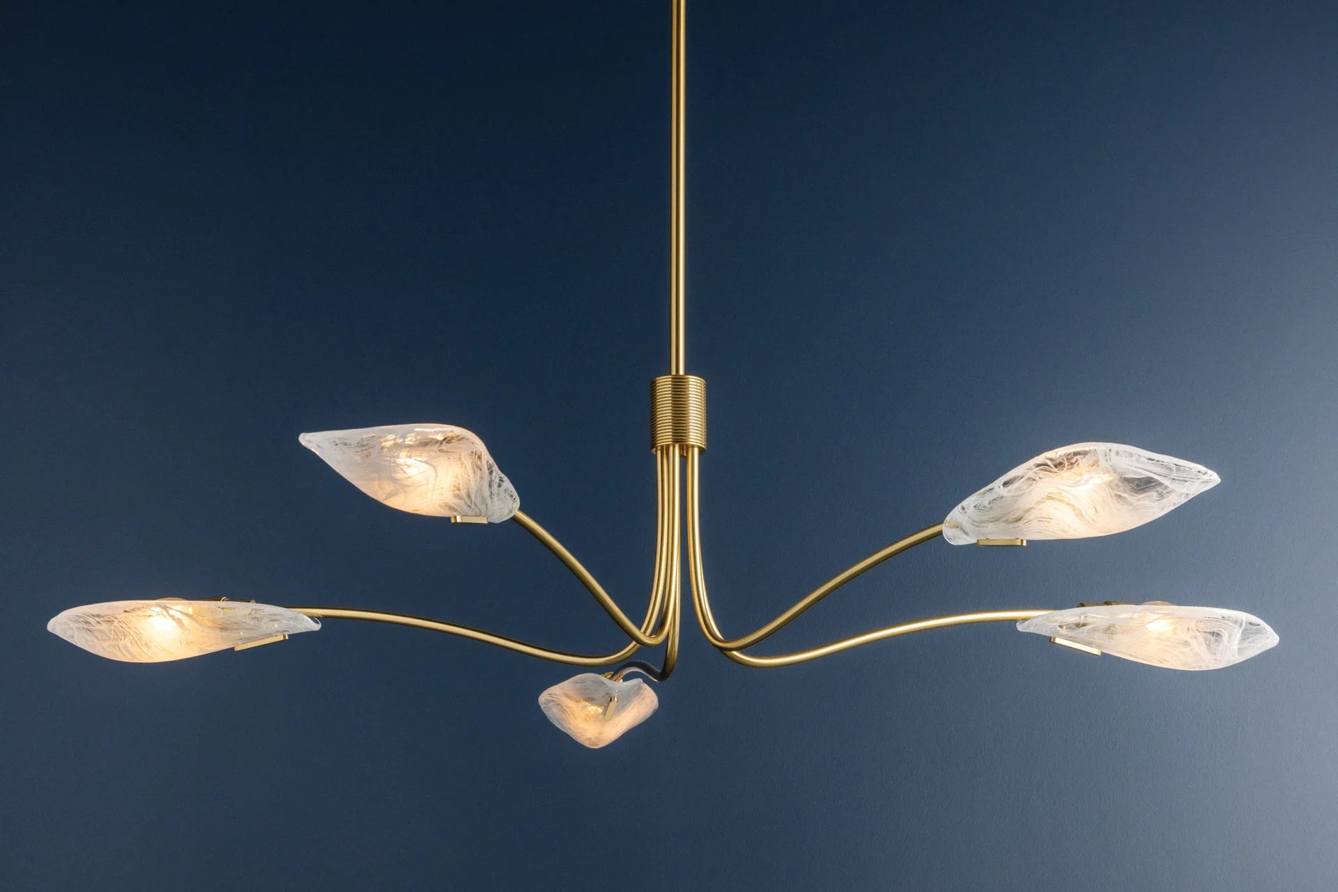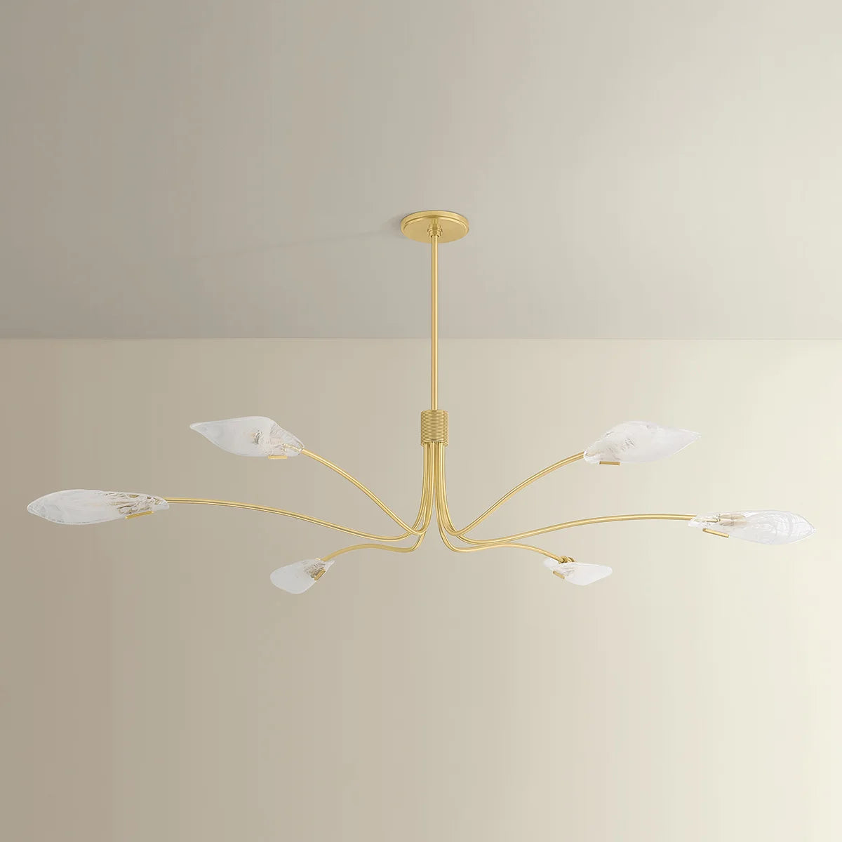 This stunning chandelier captures the organic beauty of nature through its thoughtfully designed elements. Featuring piastre glass shades that open like delicate petals, each arm curves with graceful intention to create a sense of movement and flow. The reeded central column provides subtle texture and visual depth, reminiscent of stems gathered together. Perfect for spaces that deserve a touch of botanical elegance, the Tenafly brings sophistication and warmth to any room while maintaining an airy, refined aesthetic.