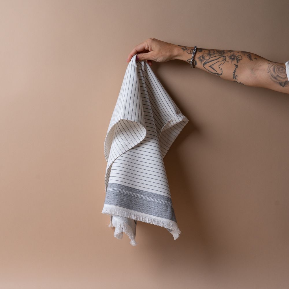 This weave is made by artisan entrepreneurs specializing in Turkish terry. This high quality hand feel is soft, cozy, and beautiful. A classic, modern pattern that will suit any taste.