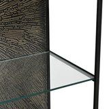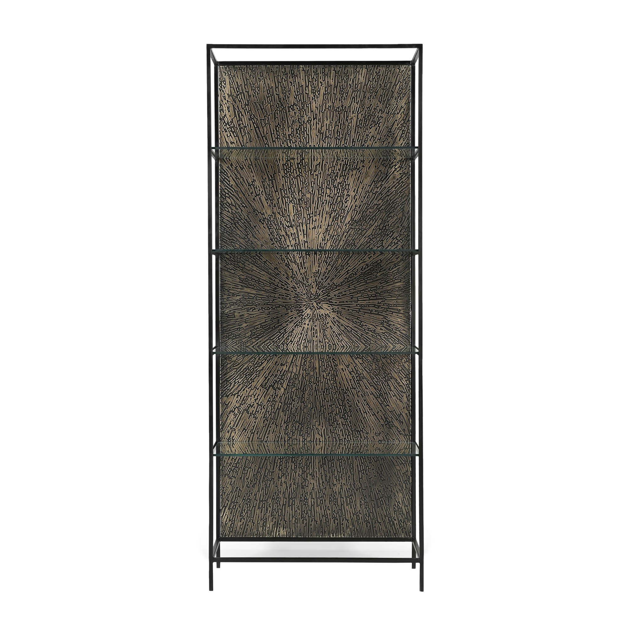 Designed to make a statement, this bookcase features glass shelves paired with antique brass details, bringing an industrial-glam aesthetic to your interior.